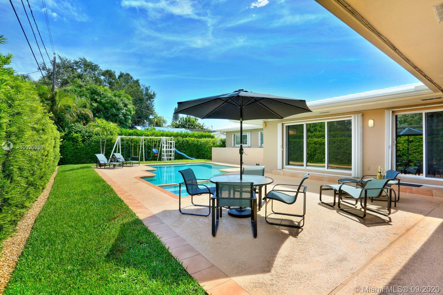 Immaculate and spacious home in THE CITY BEAUTIFUL, Coral Gables, conveniently located near UM and Doctor’s Hospital. Huge master suite addition overlooking sparking pool has sitting area, lavish bath with jacuzzi tub/separate shower & cedar-lined walk-in closet. Split floor plan w/a second master suite offers a remodeled bath & large walk-in closet. Impact Doors & Windows + accordions for added protection, updated kitchen w/SS appliances, tile & Bamboo floors throughout. Large open spaces flooded w/natural light make this home cheery & bright! Updated children’s bath is gorgeous w/double vanity & large Kohler tub. Beautiful landscaping on double lot with privacy hedge, 2-car garage, Flood Zone “X”, termite warranty and recently painted are just a few of the extras. THIS IS A GREAT HOME!