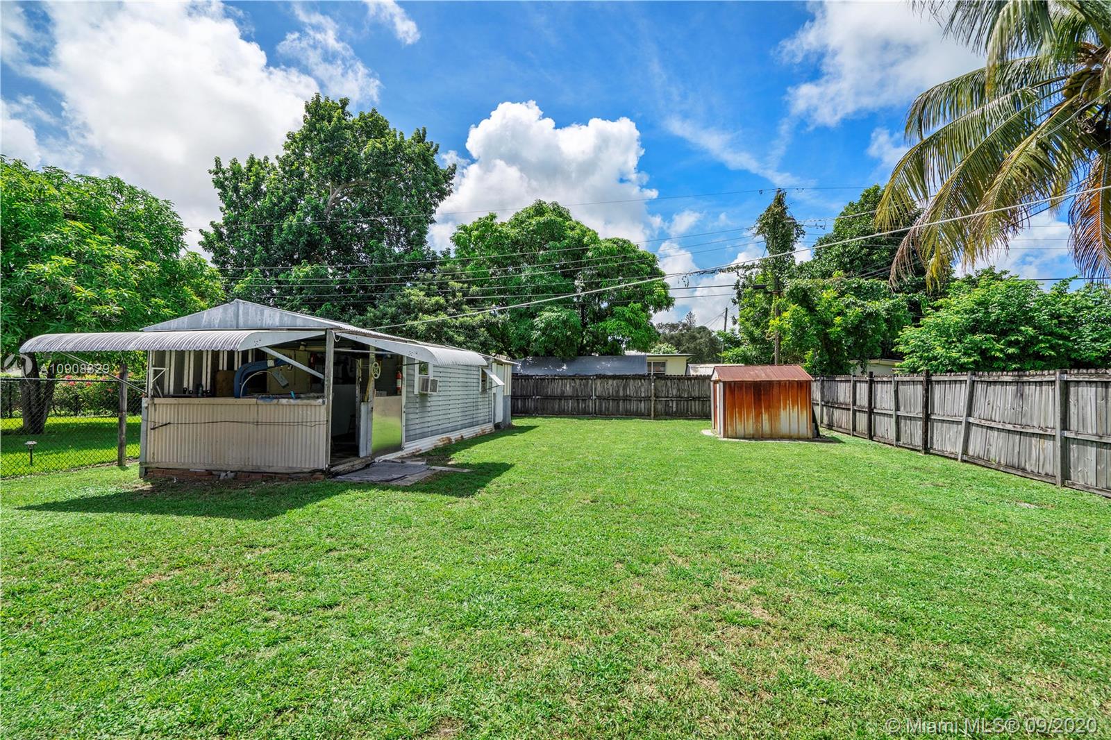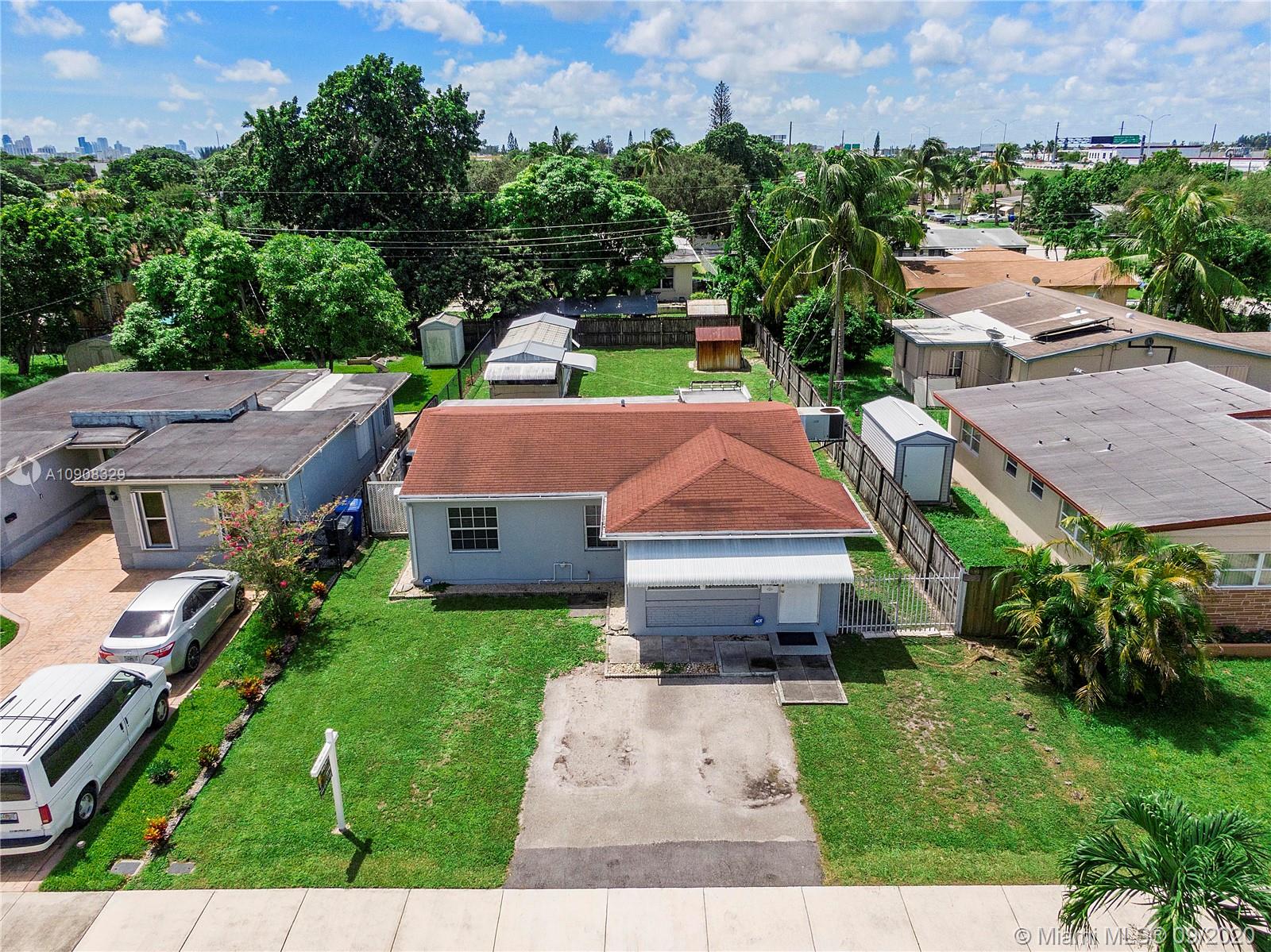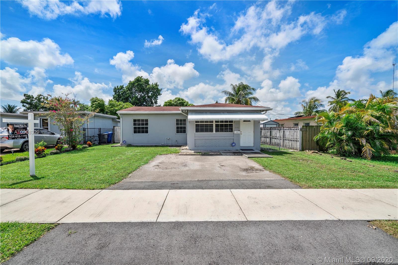 Charming 3 Bed, 1 Bath + Front Family/Florida Room Home On Oversized Fenced Lot Located In The Heart Of Hollywood. Open White Kitchen With Lots Of Cabinets, White Appliances, Tile Backsplash, Pantry & Pass-Through Window Towards The Living Room. This Home Features Tile Flooring Throughout. Front Family Room Leads Into Living Room/Dining Area. Hall Bath Has White Vanity, Tiled Shower, Mirrored Medicine Cabinet & Tiled Shower. Large Laundry/Utility Room Has Newer Washer & Dryer. Water Heater (2011). Large Private Fenced Yard With Screened Patio, Large Storage Shed (10X30), & 2nd Smaller Storage Shed. Long Driveway For Extra Parking And Large Side Yard And With Room to Park Cars. Hurricane Shutters. No HOA! Close To Beach, Hard Rock, Hospital, And More. This One Will Not Last!