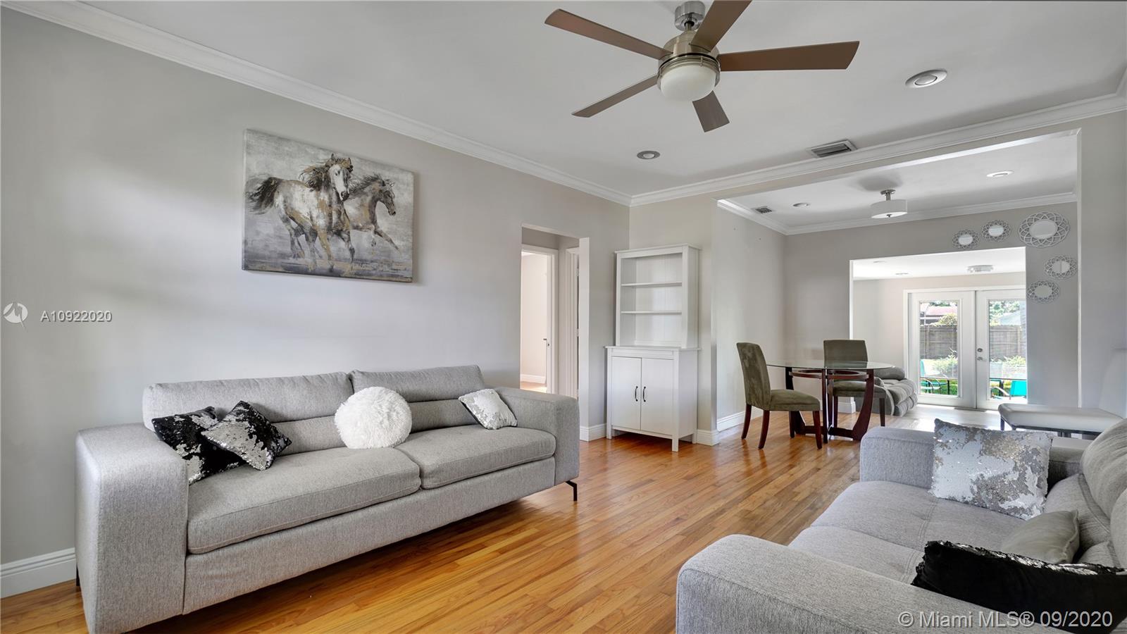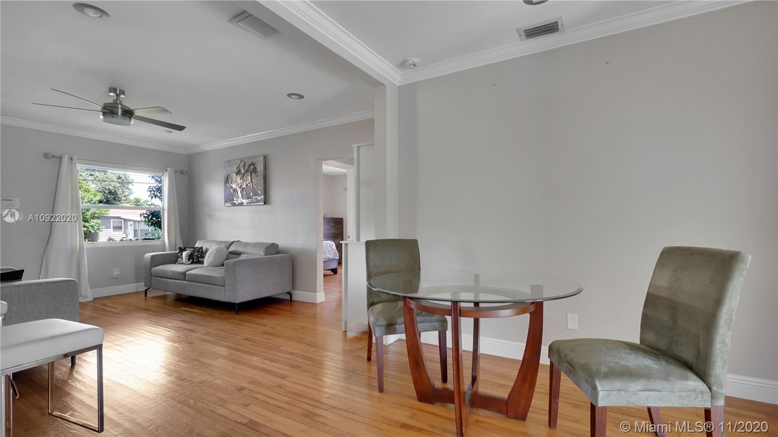 Completely remodeled 1135 sq ft, 2 bedroom, 1 bathroom turn key move in ready home. EASILY CONVERT INTO 3 BED 2 BATH. It is 3 miles from Hollywood Beach, less than 2 miles from downtown Hollywood, and minutes from I-95. This home has a new roof, A/C, water heater, and kitchen with all new stainless steel Fridgaire smudge proof appliances. The buyer will enjoy a newly tiled Florida room with French doors that open to an oversized private wood fenced in tropical oasis. This home also features a lovely tiled bathroom, all newly refinished oak real wood floors, crown molding, electrical upgrades, new windows, doors, recessed lighting, light fixtures, and newly tiled front and back porch steps. There is a spacious car port with outdoor storage. This newly remodeled home will not last long.
