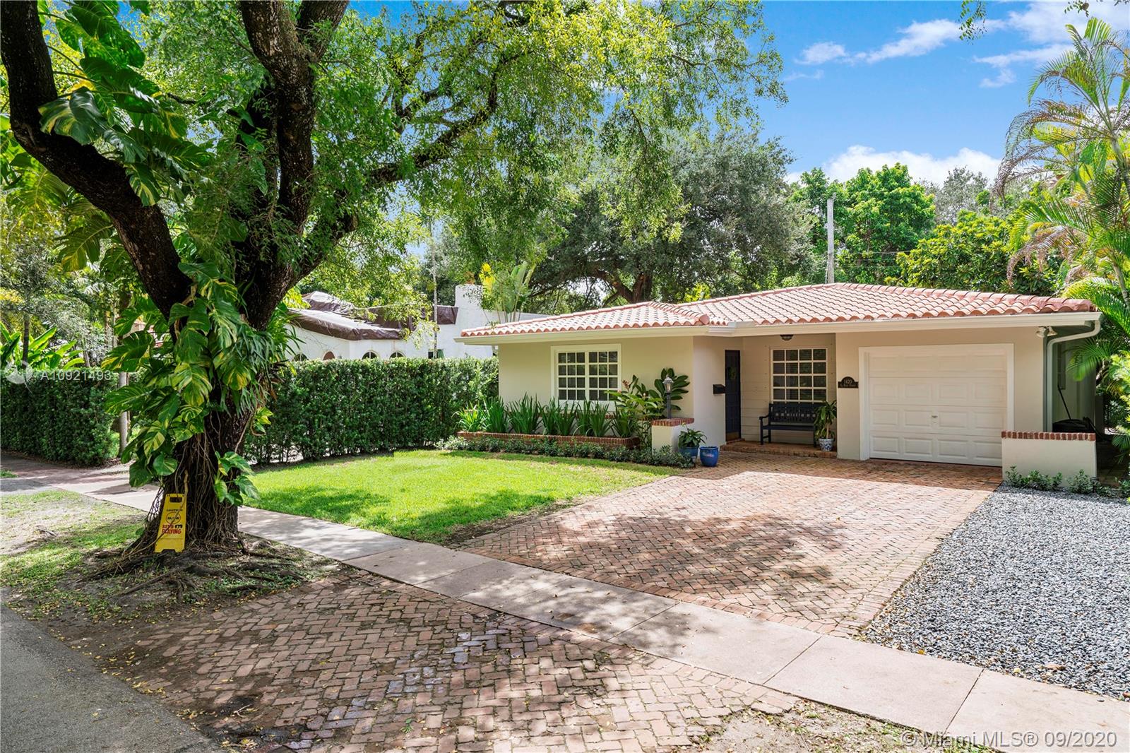 PRICED TO SELL, IN A QUIET STREET!!! Spectacular three bedroom/ two bathroom 1621 adj. sqft. home that feels like coastal living, with an open floor plan that rivals larger homes offering a foyer entry, formal living room, dining room, family room and new eat-in kitchen. Plenty of closet space with two generous linen closets. Master bedroom features walk-in closet. One-car garage. Chicago brick driveway and pavers, charming patio garden oasis with putting green and mamey tree, newly landscaped. Brand-new roof, and recently tented. Quiet tree-lined street. Excellent location in the heart of Coral Gables Walk to the Granada golf-course or El Prado. Ready to move-in. MUST SEE!! Only serious buyers with pre-approval letter. Call for appointment!