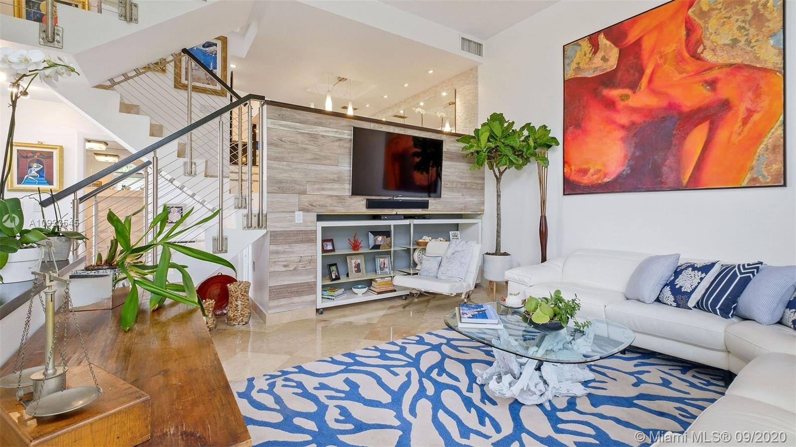 Bright Remodeled 2/2.5 in Island Paradise offers the privacy of home with the convenience of a condo.Located on a street across from beautiful park, gazebo and lake w plenty of off-street visitor parking.It features many fine appointments throughout:high ceilings with huge glass windows, top-of-the line custom-made kitchen w/ push touch cabinets, black quartz countertops, upgraded appliances, small coffee bar/office area, dining room built-in buffet server w/ white quartz top, marble and bamboo floors, impressive concrete staircase w modern metal railings, impact windows , upgraded bathrooms,500 sq.ft garage and much more. Low maintenance fee of $495 a MO.All assessments of over $60,000 have already been paid for work being done now which will benefit future buyers. Outstanding opportunity