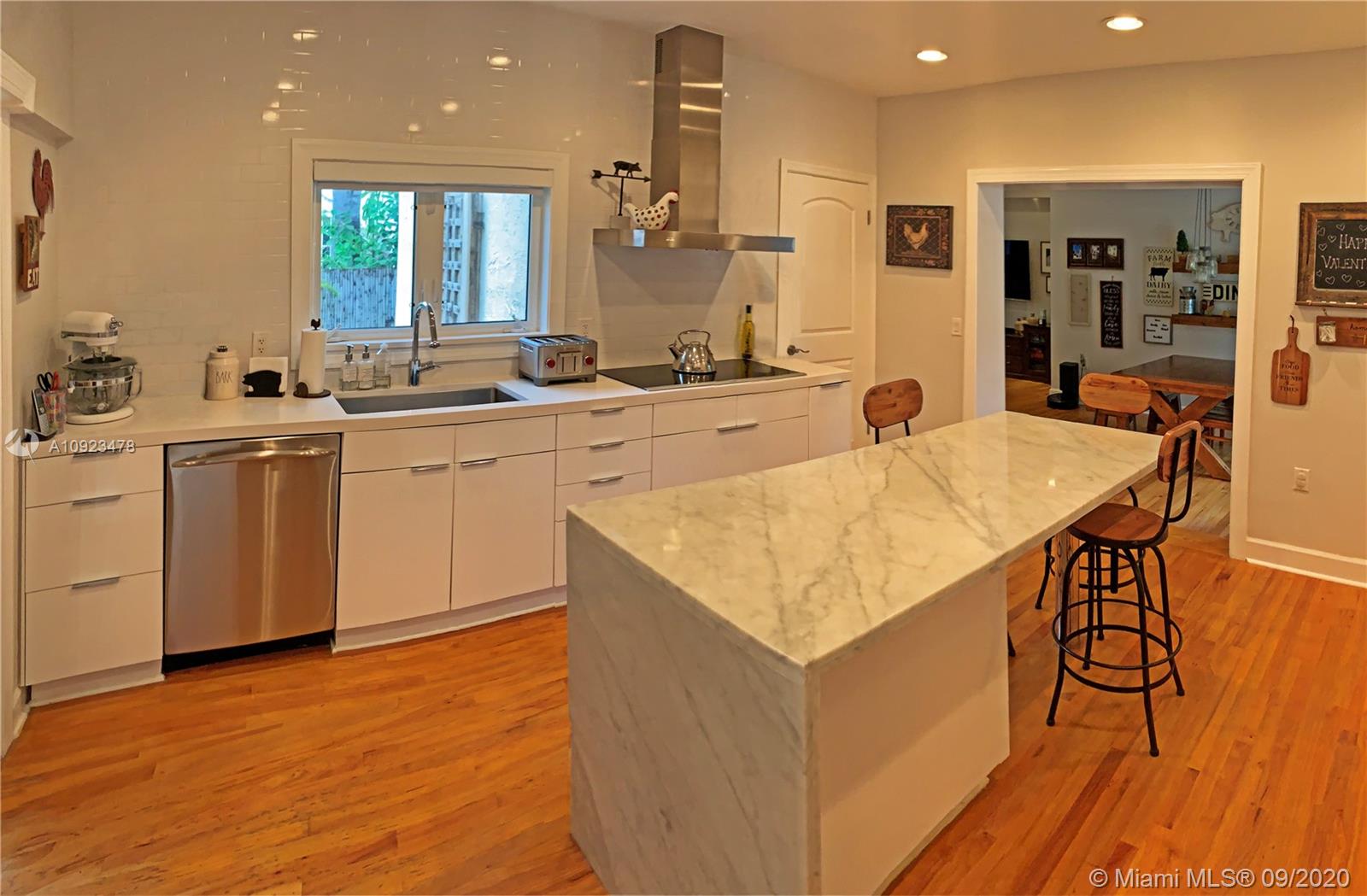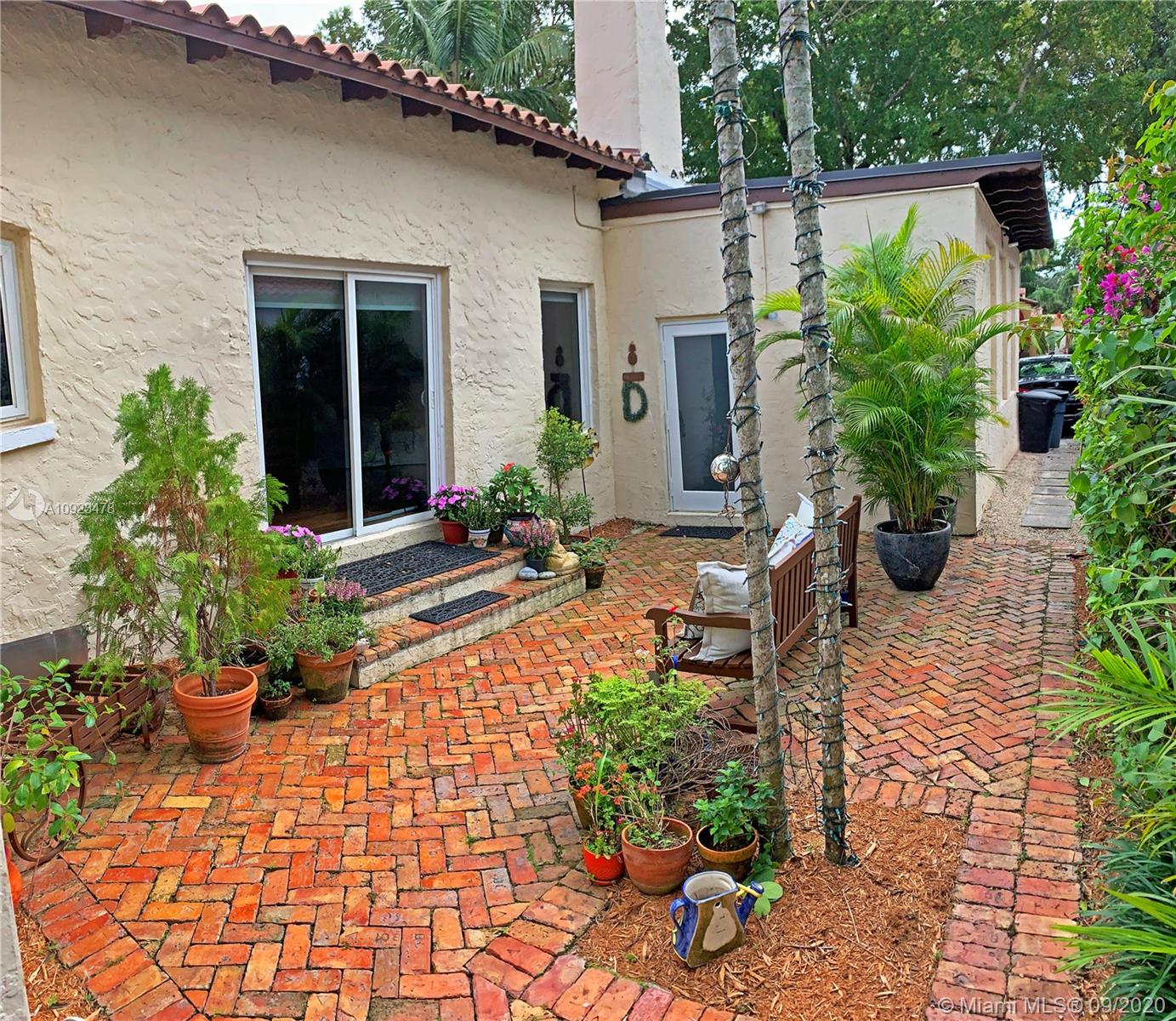 Beautifully renovated spacious one story 3 bdrm 3 bath home. Contemporary interior with designer upgrades. Flow-through living/dining. Entertain in gourmet kitchen with eat-in island featuring Carrara marble waterfall counter-top, Bosch appliances. Storage and space galore. Huge family room and breakfast area opens to romantic Italian-themed back patio with travertine stone pavers. Primary master suite offers a private retreat with spa bathroom and large his and hers walk-in closets. Second master suite bathroom features floor to ceiling subway tiles. Impact windows and doors. Come home to a tree-lined canopied street in the historic Italian village neighborhood with lovely restored homes. Walking distance to Merrick Park shopping center.