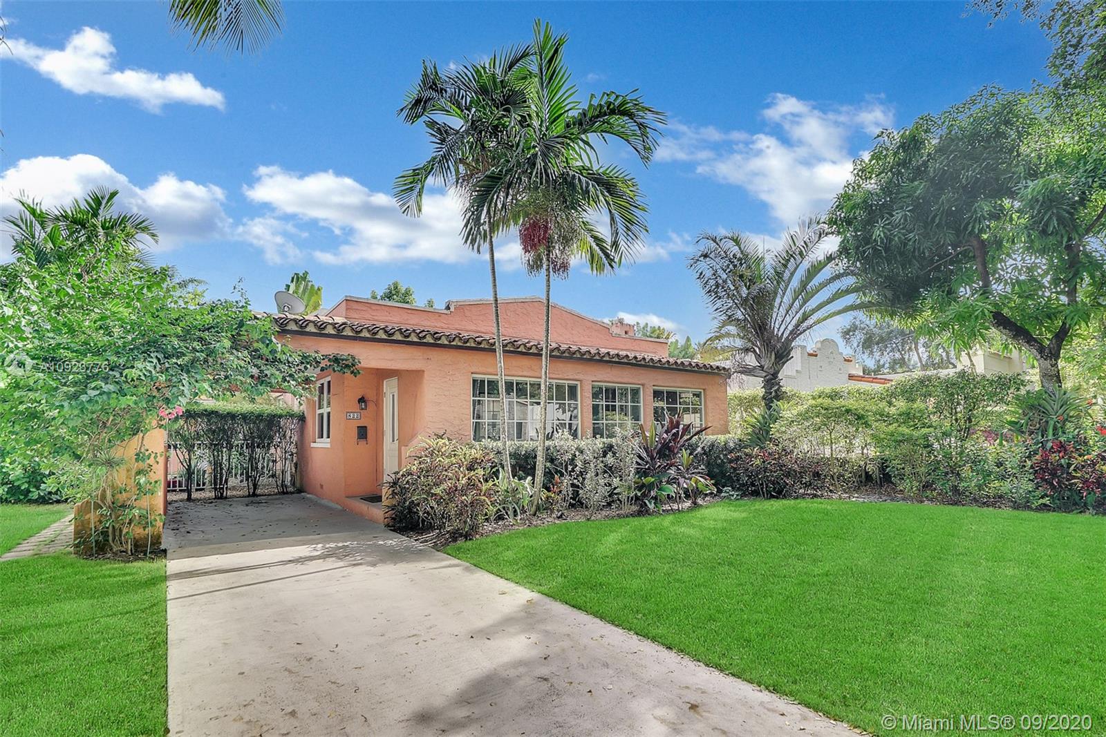 Tastefully renovated 1924 Old Spanish on a quiet tree-lined street in Coral Gables. This architectural gem was lovingly preserved & perfectly blends original charm with modern upgrades. Features include beautifully restored hardwood floors, impact windows & doors, a convenient carport & a spacious sunroom. Light & bright floor plan w/ high ceilings & sun-filled living spaces. Enjoy the lush & private chicago brick patio- the perfect tropical getaway. 3/1 main house + detached 1/1 cottage. 3rd bdrm would make an ideal den/office or nursery. Newer roof (2017). Come live a quiet, yet urban lifestyle walking distance to Gables’ parks, cafes & restaurants.