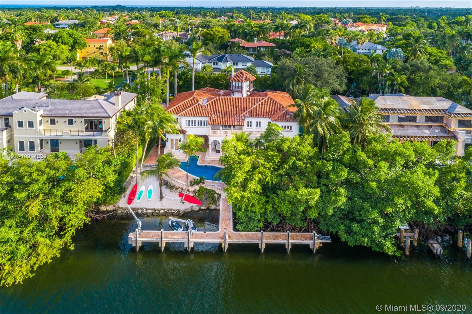 This Islands of Cocoplum signature home truly represents the Coral Gables resort lifestyle & a boater's paradise: boasting one of the largest docks on the Island's Waterway & minutes from the open ocean. This magnificent 7 bed 6.5 bath with over 7,500 sf is situated on a 22,725 waterfront lot without any bridges to bay, deep water wide canal & over 100+ft water frontage. Separate office & library w/ water views, 4 car garage, detached cottage, cabana bath & sauna, practice tennis & basketball court & a private beach to enjoy all your water toys. Ride your golf cart within this gated & secure community to the private marina, tennis courts, full basketball court, playground & gym. Located in the most desired area of Coral Gables, just steps away from Coconut Grove & South Miami.