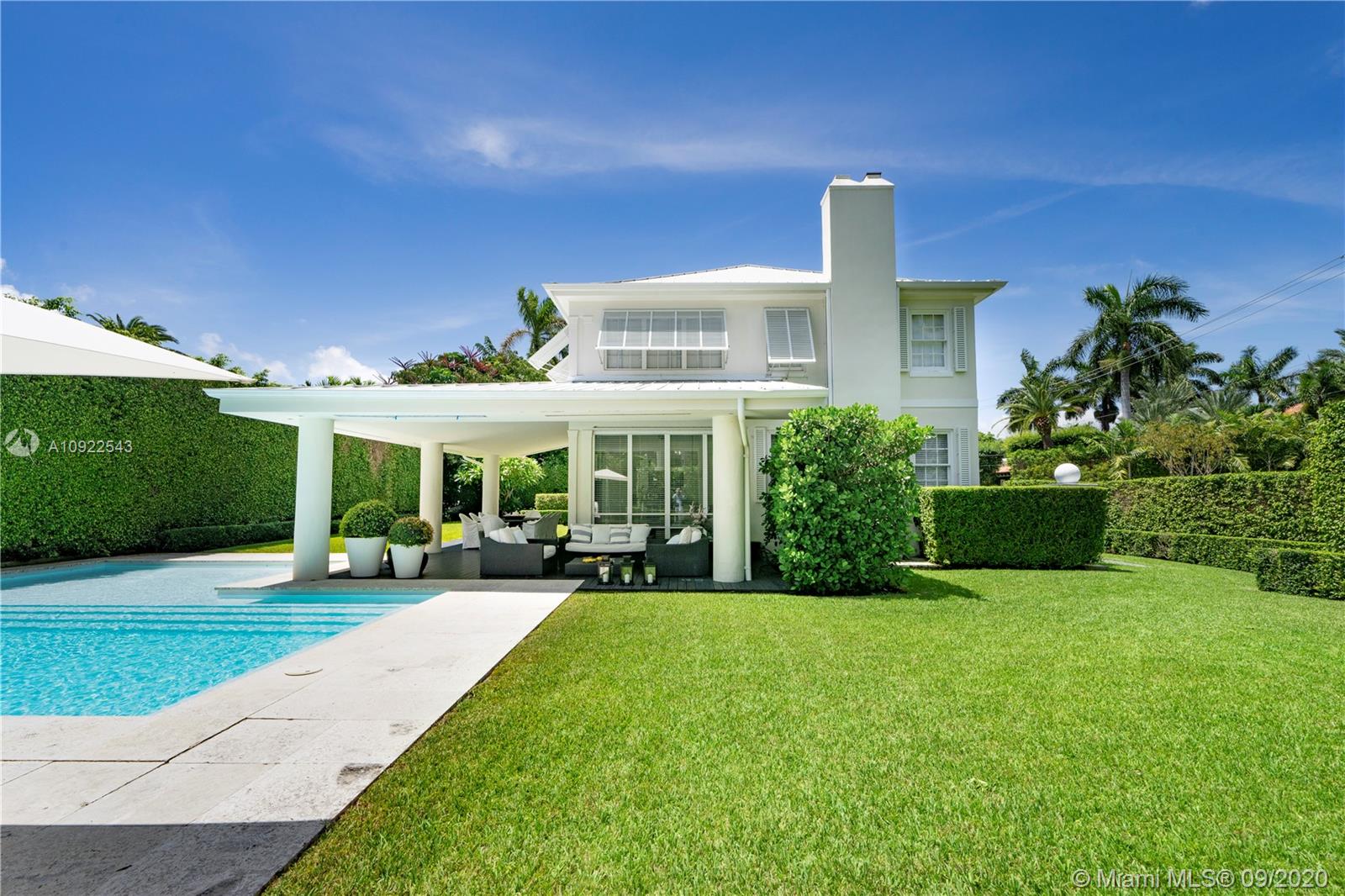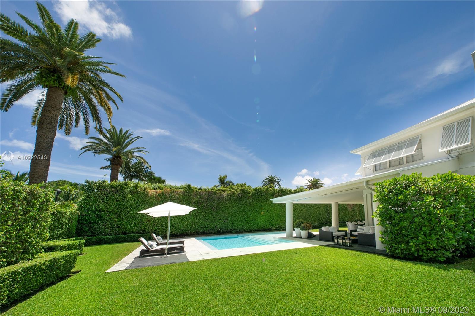 Palm Beach meets Miami Beach! Situated in one of Miami’s most exclusive gated communities, Sunset Island 3, this stately & sophisticated home boasts spacious light & bright interiors, 3,823 Total SF, 4bds & 3 ba on oversized 11,475 SF corner lot. Professional lush landscaping w/ soaring manicured hedges surrounds stunning covered terrace, pool area & green space affording the utmost privacy. Top-of-the-line lighting by Kreon illumination throughout. Gourmet Kitchen w/ Miele appliances & custom Pogenpohl cabinetry. Designer bathrooms by Agape, Boffi and Vola. Garage converted into large den/party room w/ separate entrance. Walk to all your favorites, less than a mile from Sunset Harbour, Dining, Shopping, Publix / Fresh Market, Barry’s, family friendly parks, Golf Course & Lincoln Rd..