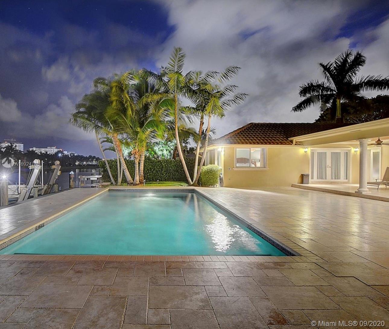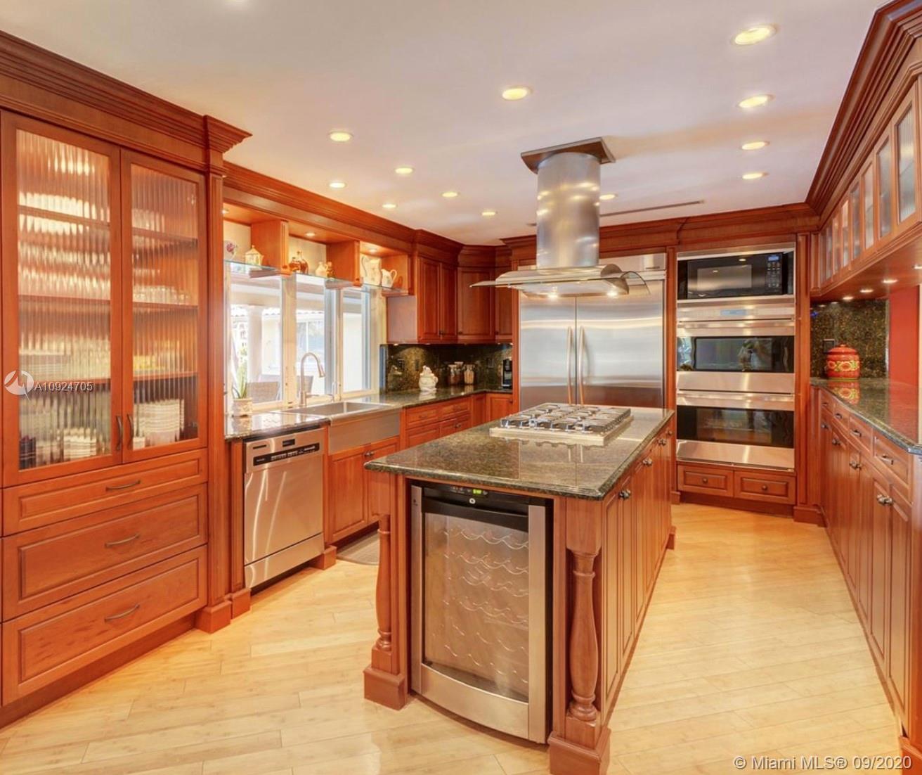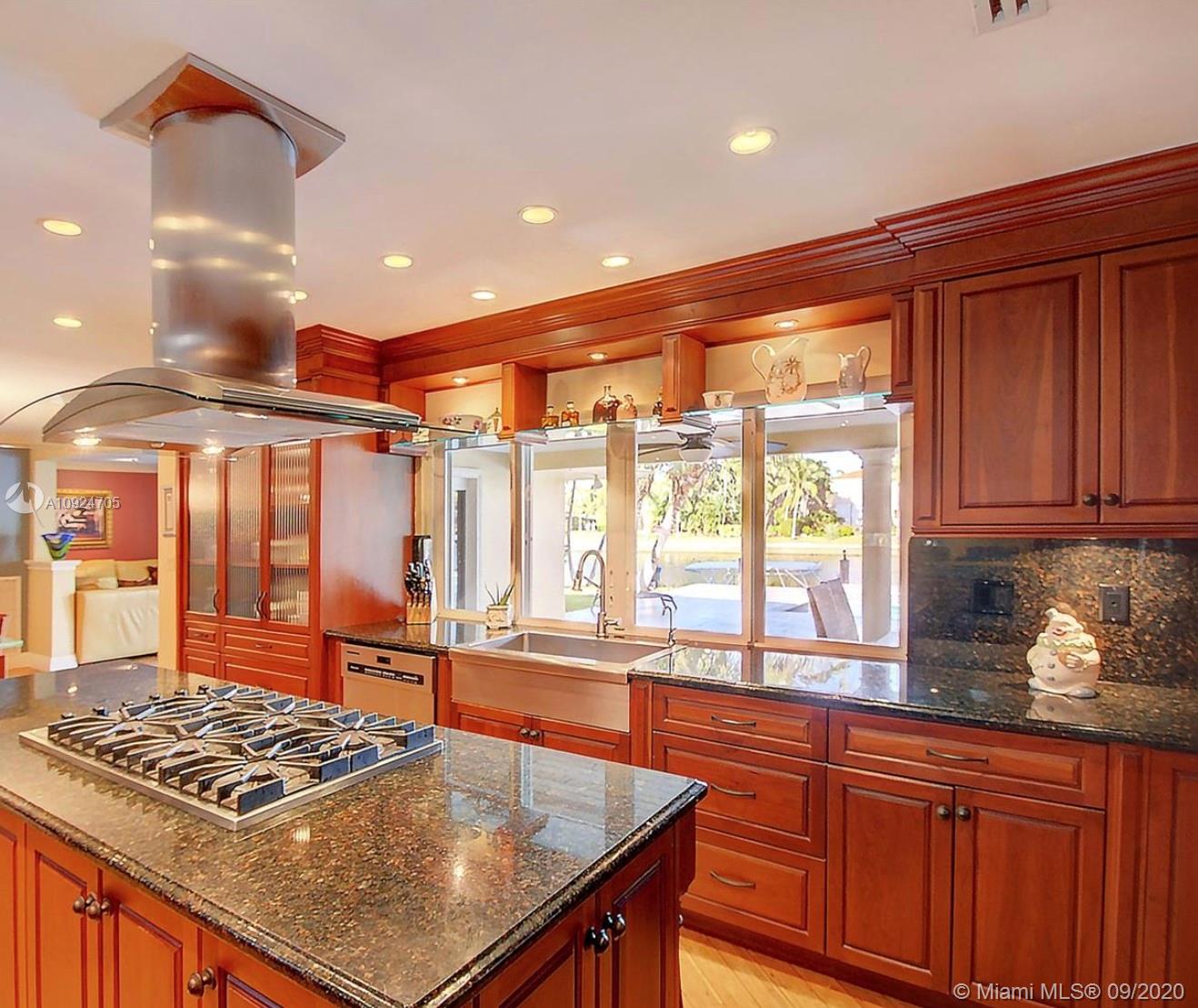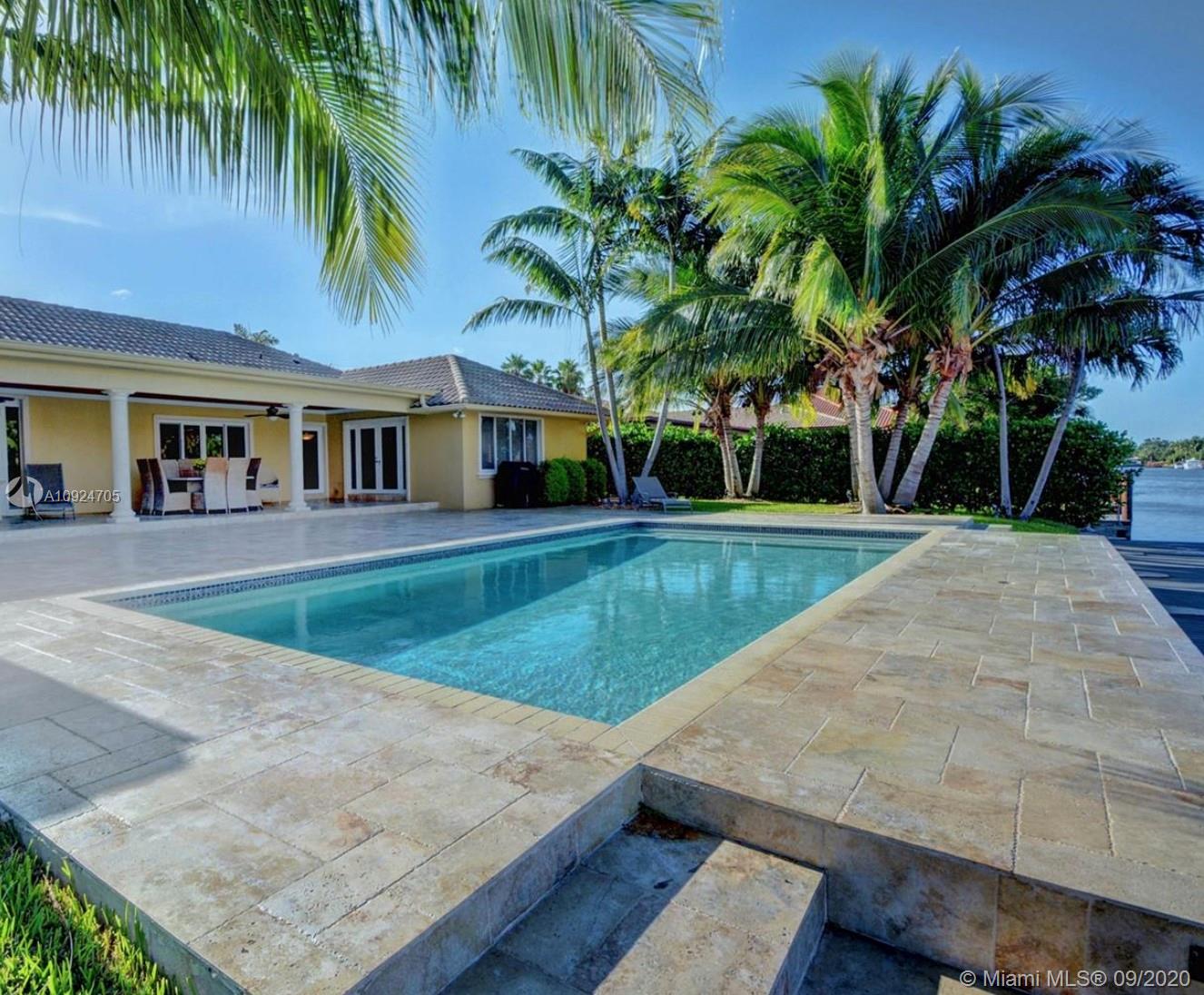 Designer custom waterfront home offers 6 full bedrooms & 4 1/2 baths...4700sqft. Living space overlooking spacious patio deck with beautiful marble tile - newer salt water pool....100ft dock makes this a boater’s delight... 12.500 lbs. boat lift in place... chef's gourmet kitchen with Wolf ovens, gas range and all top of the line appliances and custom cabinetry w/eat in kitchen. Bar area and 3 separate temperature controlled wine storage for the aficionado. Formal dining room and living room, hurricane impact windows thru-out! Split floor plans with a master bedroom on the waterside w/views of the pool and luxurious bath w/steam shower. Access to the covered patio for Alfresco dinning and open living areas makes this a true family & amazing home!!