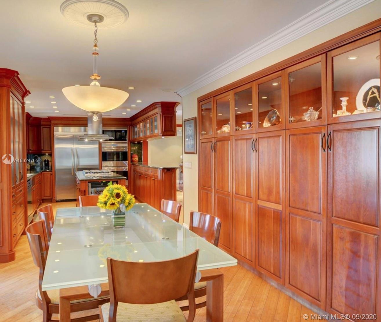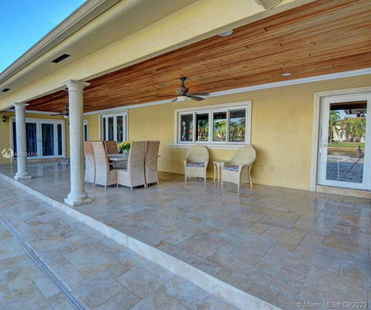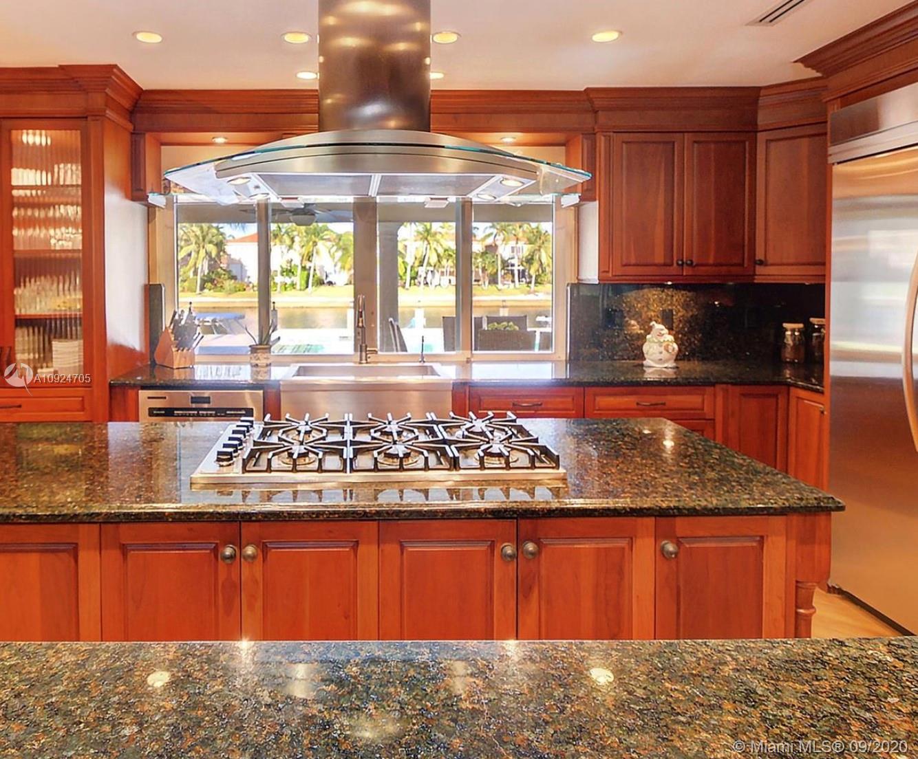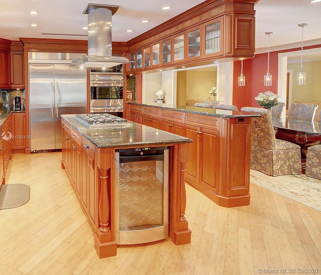 Designer custom waterfront home offers 6 full bedrooms & 4 1/2 baths...4700sqft. Living space overlooking spacious patio deck with beautiful marble tile - newer salt water pool....100ft dock makes this a boater’s delight... 12.500 lbs. boat lift in place... chef's gourmet kitchen with Wolf ovens, gas range and all top of the line appliances and custom cabinetry w/eat in kitchen. Bar area and 3 separate temperature controlled wine storage for the aficionado. Formal dining room and living room, hurricane impact windows thru-out! Split floor plans with a master bedroom on the waterside w/views of the pool and luxurious bath w/steam shower. Access to the covered patio for Alfresco dinning and open living areas makes this a true family & amazing home!!