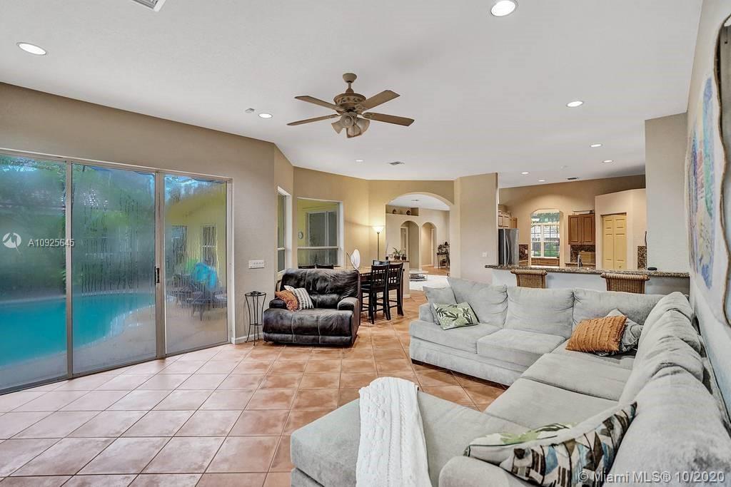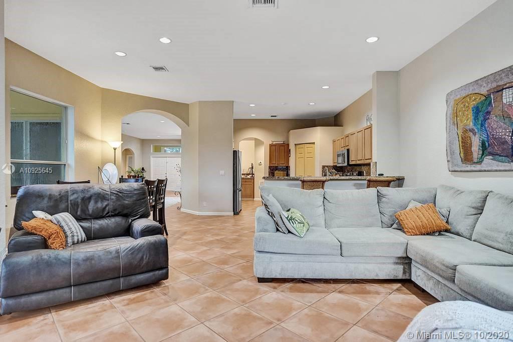 Triple Split 5 Bedroom 3 Full Bathroom Home In The Prestigious Community Of The Ridges with a guard gated entrance, walking distance to top schools this home features tiled floors throughout, wide open floor plan! 5th bedroom is being used as an office! Relax on the screened covered patio perfect for outside entertaining! **NEW IN 2020 - water heater, refrigerator in garage, microwave, ice maker, washing machine, pool pump, dishwasher** Association requires all pick up trucks to be in garage at night!