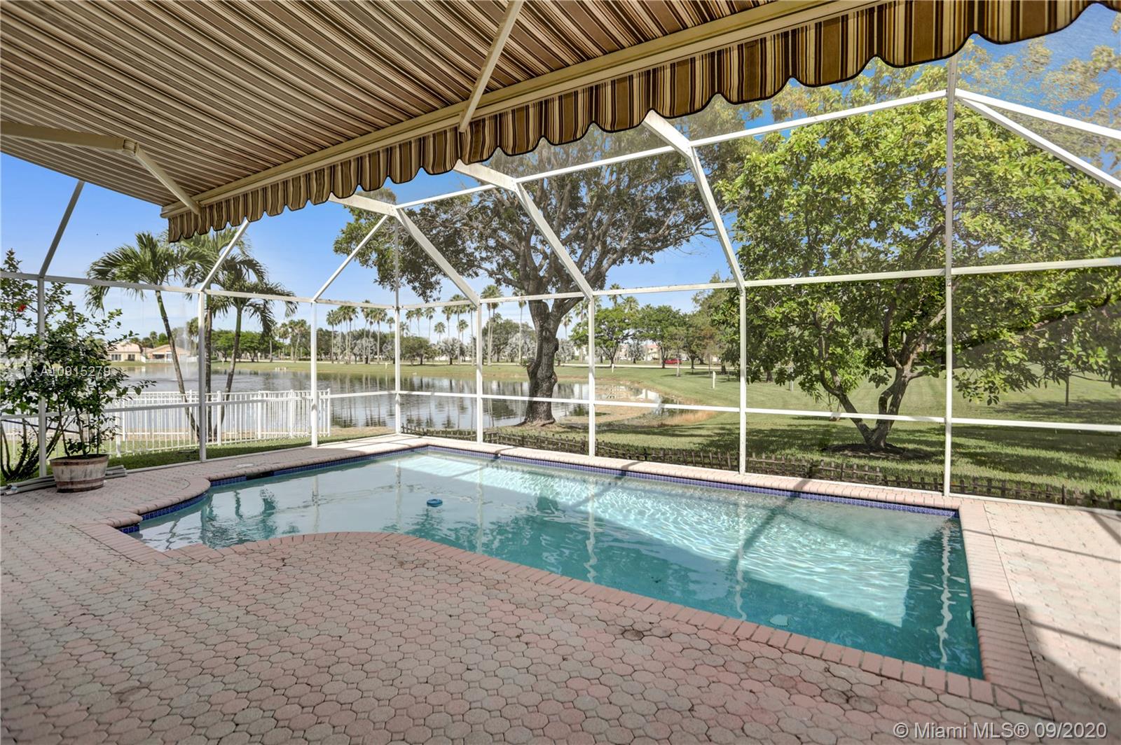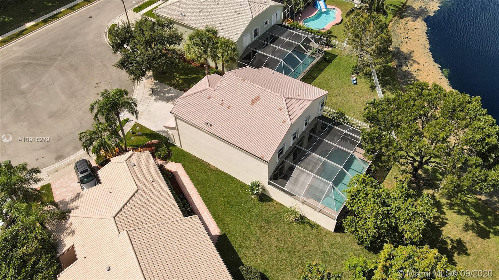 Bright and spacious 5 bedroom, 2.5 bath Lake-front Pool home on a quiet cul-de-sac in Pembroke Pines. Concrete block two-story construction with 3-car garage, ceramic tile downstairs, stainless steel appliances, wood kitchen cabinets with large island, accordion shutters on second floor and is freshly painted. Pool deck is screened-in and has a retractable awning for shade. All bedrooms are on the second floor. Resort style family living with several community swimming pools, tennis courts, clubhouse, basketball courts, playground and walking paths. TownGate association also includes Cable TV, High-speed Internet, 24 hr Roaming Security and is conveniently located near I-75 and Pines Blvd.