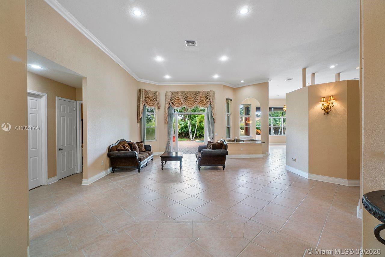 Looking for a great value? Davie's Imagination Farms has an excellent offering to consider. It is the largest model in the community. Situated on a private, corner lot - making it ideal for an addition. The lot backs up to one of the community parks and it has vegetation for privacy. The bones are in great condition. Many would want to personalize and update this home and some will appreciate as it is. The home features soaring 14' ceilings heights in common areas and the covered outdoor lanai. Bedrooms with 10' ceilings and 8' doors. 5 bedrooms including the office and 4 full bathrooms in the floor plan. Home has a swimming pool and summer kitchen outdoors. Owners are allowing in person viewings and will entertaining all offers.