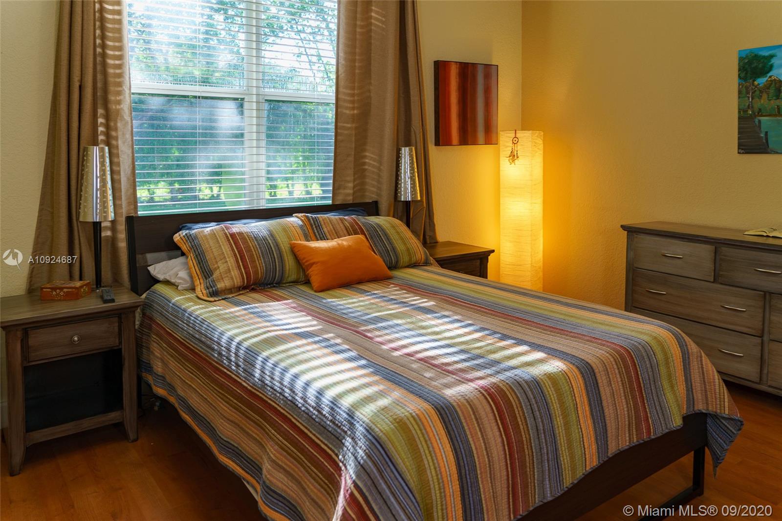 Gorgeous home with 3 Bedroom & 2 Bath with 2 car garage in the desired community Isles at Weston. Great layout. Spacious living and dining areas. Ceramic tile in the kitchen and bathrooms and wood laminate in all living areas. Stainless steel appliances with granite counters throughout the kitchen. Clubhouse with a community pool, playground, gym, and game room. "A" school rating. HOA includes cable, internet, alarm, and 24 hours, security guard. Seller to pay for the title and to choose the Title company.