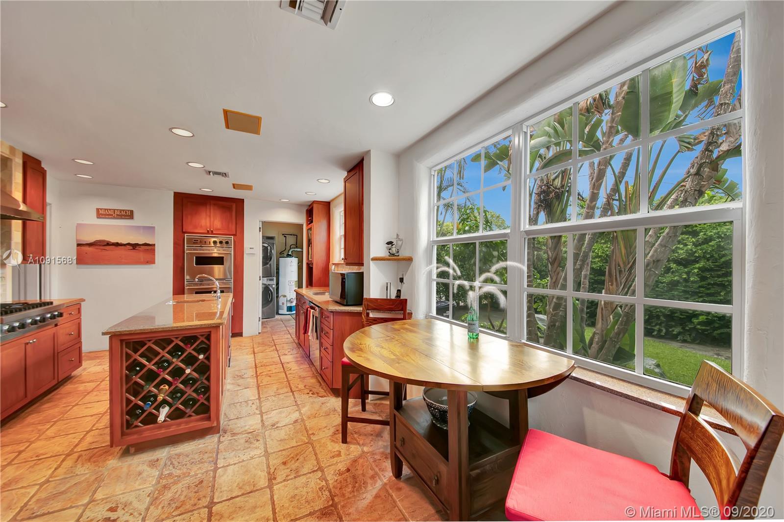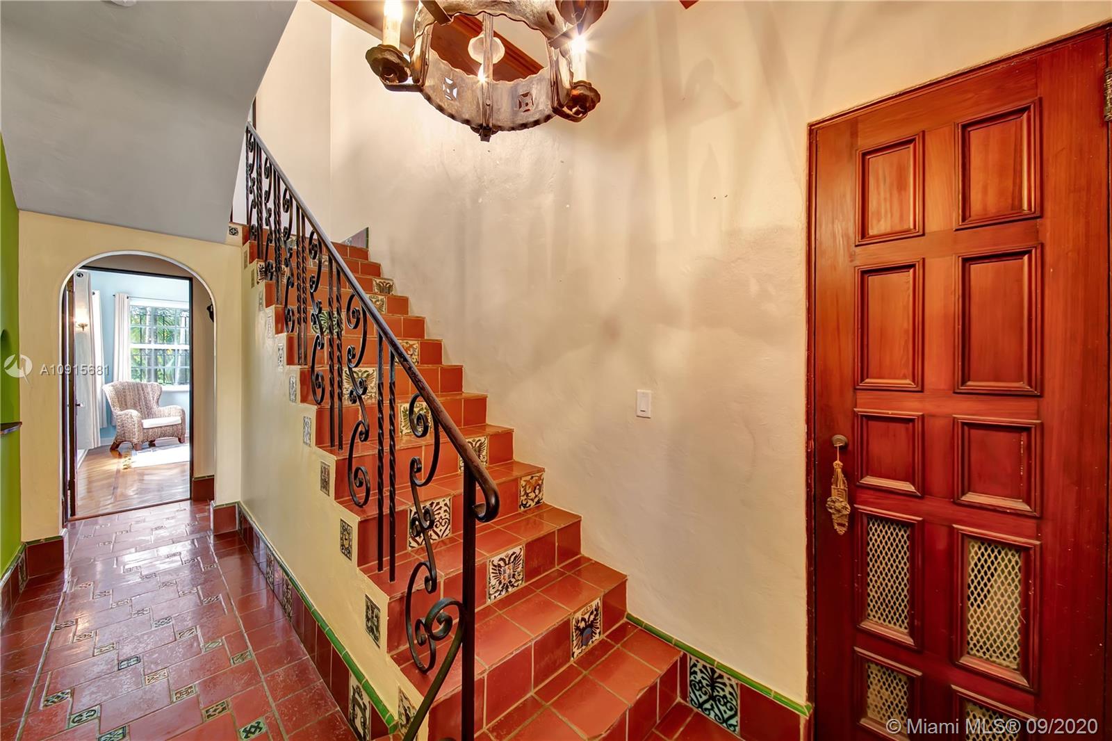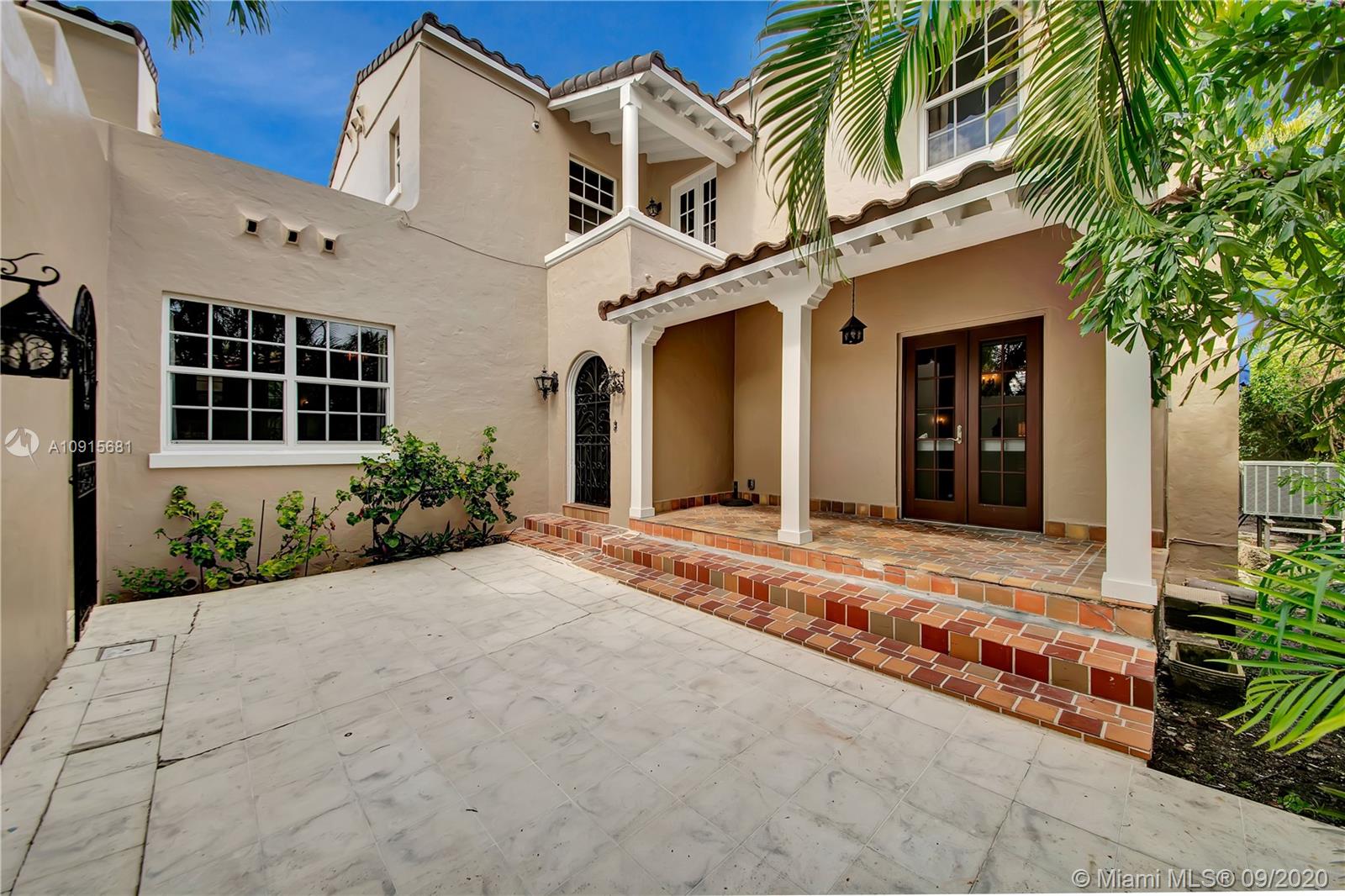 Prestigious La Gorce Golf Subdivision: 5455 Alton Road is a step back in time. 1931 Mediterranean Revival retreat exemplifies architectural integrity and updated conveniences. Walled, setback construction allows for quiet, tranquil lifestyle. 4 bedrooms +sunroom, 3 baths, plus 1/1 guest quarters. Home features vaulted ceilings, of pecky cypress w/ exposed beams, Fr doors,2 wood burning FPs & centrally placed staircase , wood floors w/mahogany inlays. Master suites on each level. Eat-in kitchen, w/ floor to ceiling cabinetry, central island, ice maker, stainless Viking double professional ovens, off kitchen laundry. Flagstone/brick patio w/ hedged, privacy fencing, overlooks golf course and gardens. Rich mature landscaping beckons one to the outdoors.