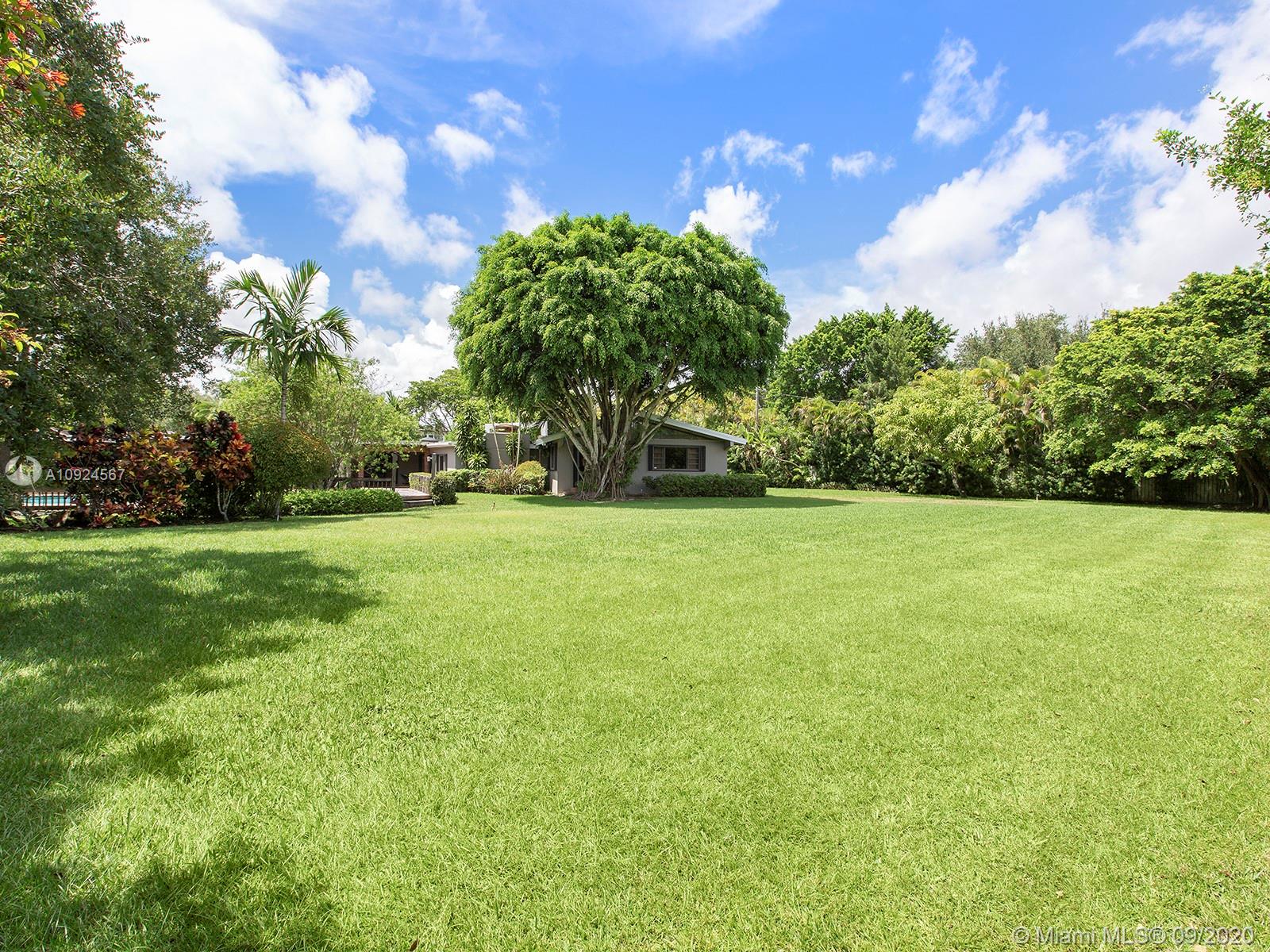 Incredible full acre property on one of Pinecrest's most coveted quiet streets surrounded by gorgeous new mansions. Room for a full North/South tennis court (see survey attachment). Open living space floor plan, beautifully maintained home which was significantly added to in the 80's and updated constantly. Enormous separate master suite with huge space, sitting room/office/closets and large bath. 3 bedrooms 2 baths on other side of the house. 20 x 40 dream pool with huge covered outdoor area, former sauna and more. Accordion shutters, fireplace, gorgeous wood floors, big wood/granite kitchen, and skylights. Some will renovate, some will build anew.
