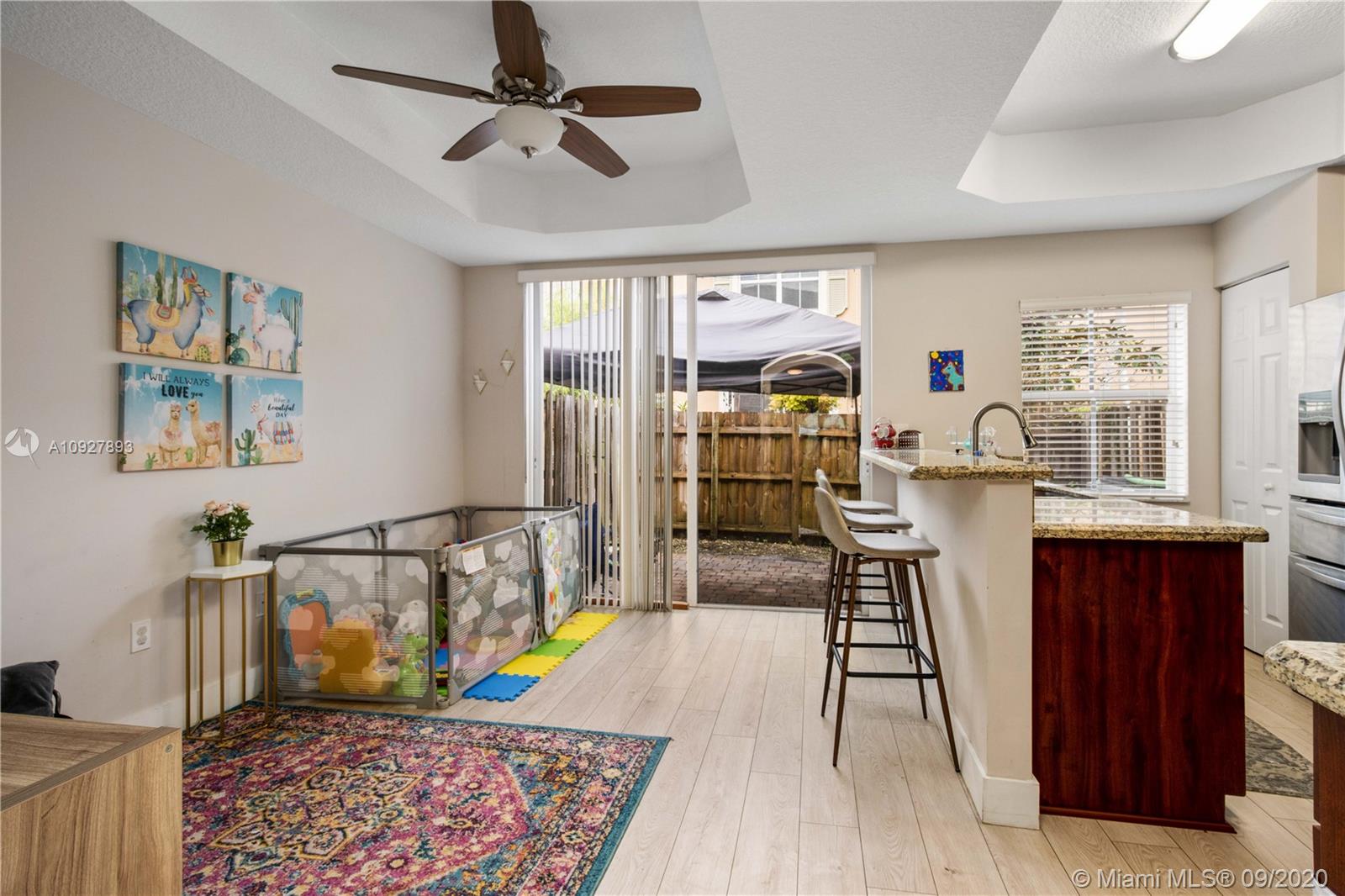 Welcome home to this spacious Townhouse in the desirable city of Hollywood. This corner unit has updated floors, SS appliances and granite countertops. Walk into your over sized master bedroom with walk in closet and a split floor plan for added privacy. Outdoor patio perfect for gatherings, vaulted ceilings, shutters and much more! The gated community features a pool, playground and a low HOA. Close to schools, easy access to highways, shopping, and the Hardrock. Virtual Walk through available