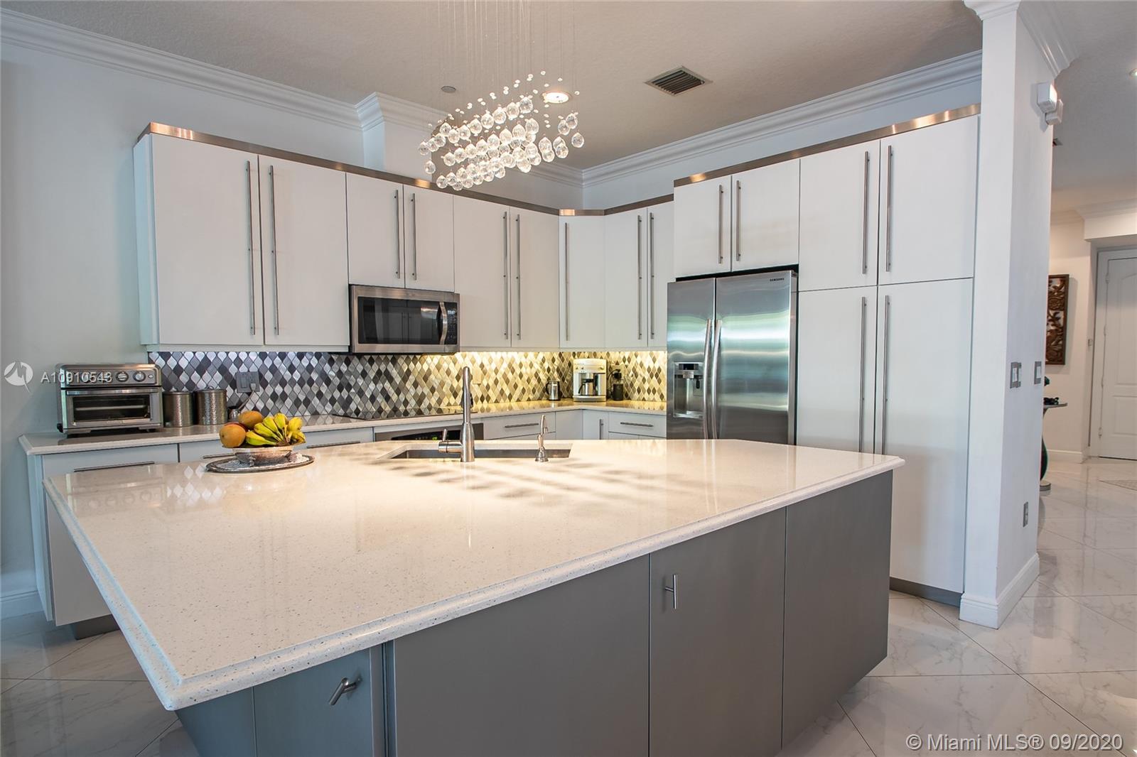 Stunning, totally renovated property with open floor plan , private elevator, hurricane windows and doors throughout the home. Modern kitchen with white cabinets, clean lines and European hardware. Quartz counters with oversize island incorporating seating for four and additional storage. First floor has 32 X 32 rectified porcelain tiles, second and third floors have bamboo laminate flooring. Private elevator services all levels of the home. Zen private patio and garden with three fountains, native plants and mosquito misting system. Please see attached highlight sheet for additional improvements and click the link for the virtual tour. All measurements are approximate and should be verified. See attached highlight sheet for additional details.