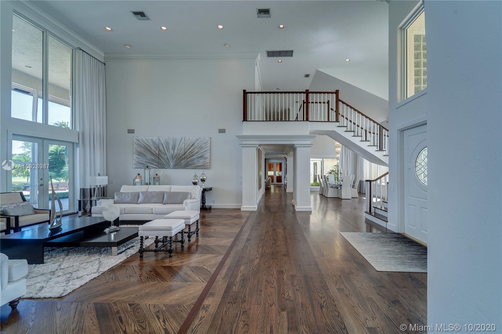 SPECTACULAR LAKEFRONT custom estate offering transitional modern living with luxury & privacy in the prestigious Windmill Ranch Estates! Featuring over 12,000 total sq ft including 2,000+ sq ft of covered entertainment terrace. 5 bedrooms including a guest suite with private entrance, two story master with marble bath, office, library, exercise room, loft, 6 full baths & 2 half-baths. Gourmet kitchen with state-of the-art appliances, built-in aquarium & wine cellar. Expansive screened patio complete with teak outdoor summer kitchen overlooking panoramic lake views. This meticulously maintained home is ideal for entertaining on a grand scale! In addition - 4 car garage, NEW ROOF and IMPACT WINDOWS!