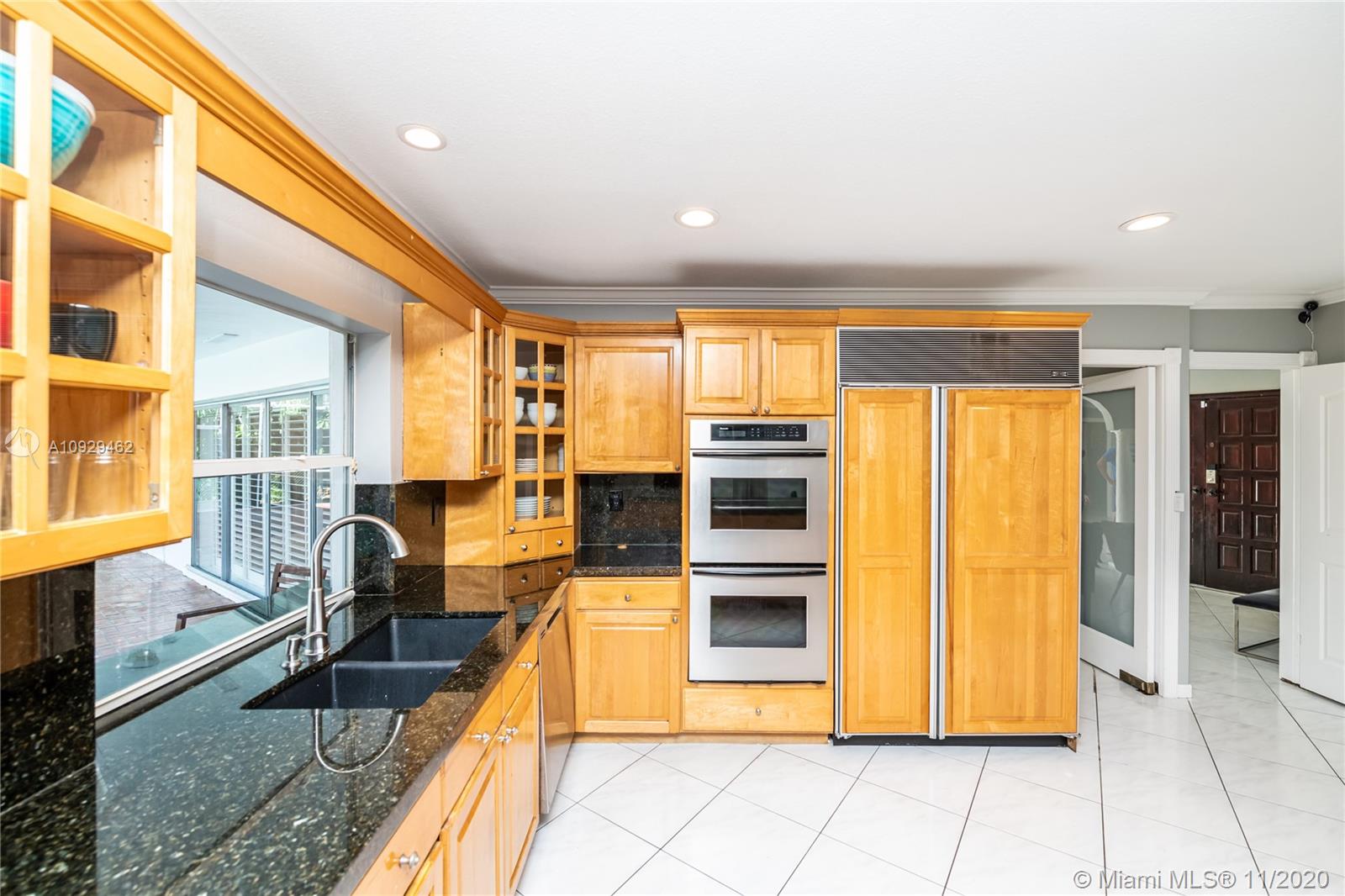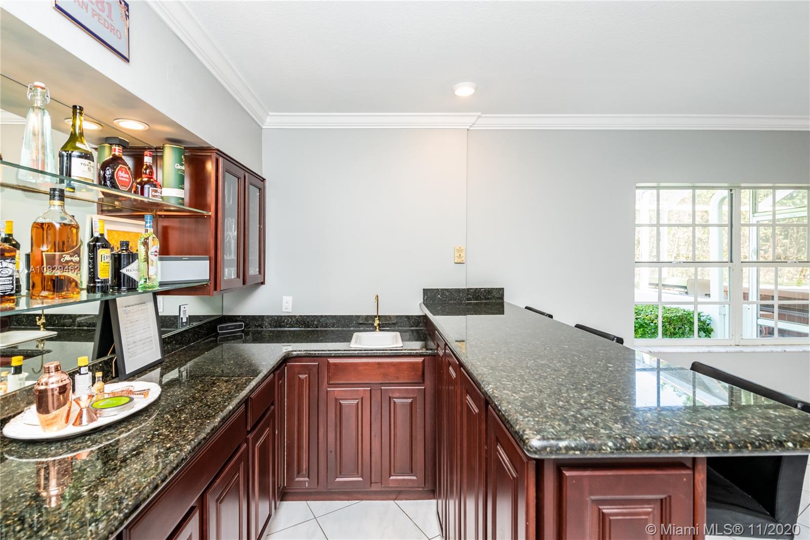 Best Value Property Currently for Sale in Gables By the Sea. Sunshine pours through wide banks of French doors & oversized windows throughout the 16,646 SF residence, reflecting off white ceramic floors to brighten every corner. A flow-through layout enhances the sense of space, particularly in the heart of the home where the family room, club-style wet bar, and the large kitchen with a breakfast room meet with shared views of the screened pool patio and its alfresco kitchen. A bonus room works perfectly as an office, workout space, or playroom. Formal living and dining rooms provide options for more refined entertaining. Coral Bay Park is located within the community. Gulliver School PK-8 is adjacent, with A+ rated public schools nearby. Hurricane shutters. 2-car garage.