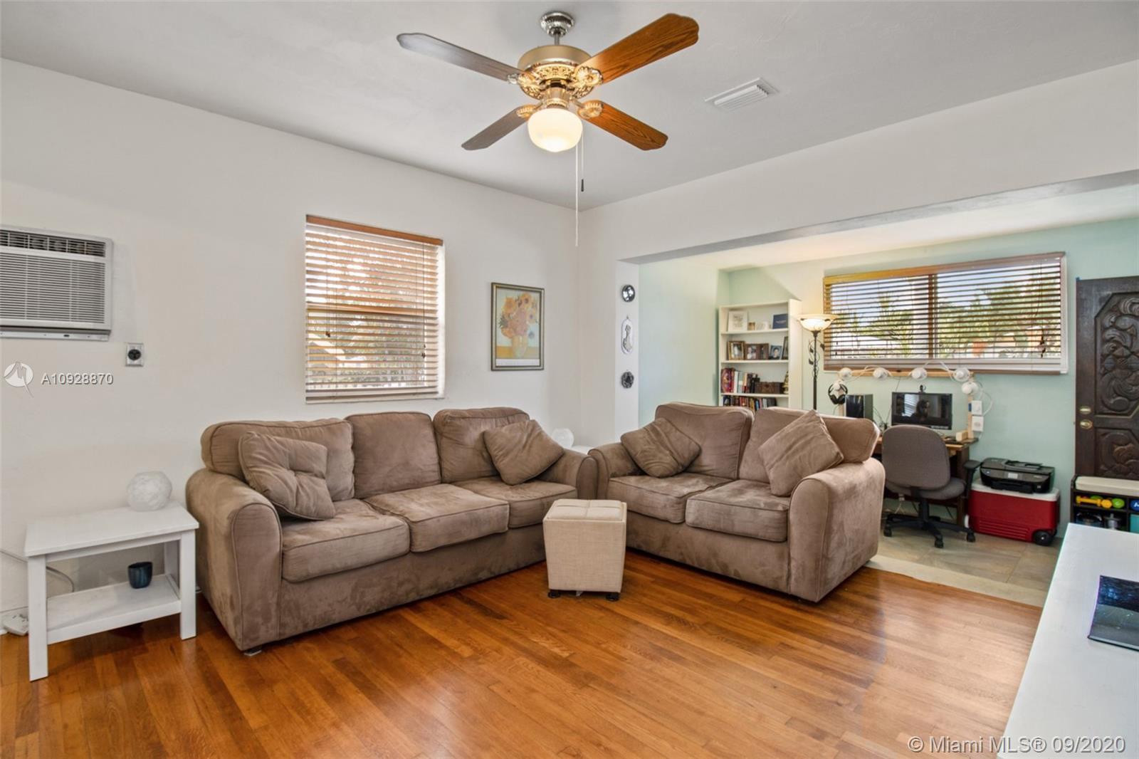 Spacious 1150 SF, 2 bedroom/ 1 bath plus BONUS ROOM, Mediterranean style home on 6708 SF lot. New AC, all impact windows and doors, 2 yr roof, new paint, new electric service. Beautiful wood floors. Bonus room could easily become a third bedroom. Huge fenced yard with Gazebo. Room for a large pool, RV, boat. Central Hollywood location, easy access to highways, beaches, downtown. Property records to not show correct SF. Seller has documentation showing 1150 SF. Please request if interested.