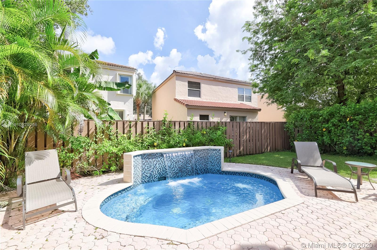 Wow this is the one you have been waiting for. Just under 1600 sqft in this immaculate and beautifully removated 3/2.5 with soaking pool in Fountain Spring. Open floor plan with gorgeous porcelain tile, and an updated kitchen featuring granite counters, wood cabinets, and GE Monorgram s/s appliances that overlooks the spacious family and dining room. 2nd floor and stairs feautres hand scraped engineered wood floring thoughout. Large master suite with walk-in closet , secondary closet, and grand master bath with dual sinks and huge walk-in shower. Both secondary bathrooms have been tasefully updated. Plantation shutters throughout. Full hurricane protection featuring a combination of panel and accordion shutters, and some impact. BRAND NEW ROOF to be installed prior to closing.