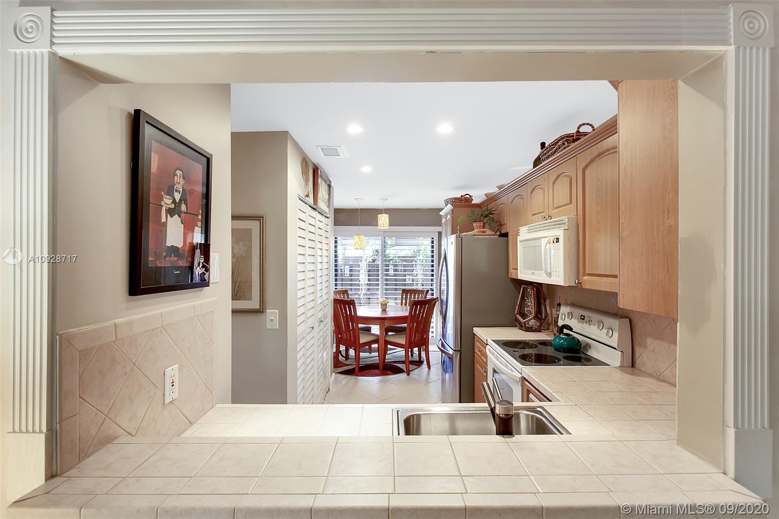 Sherbrooke Townhomes is an ideal community just minutes from Hollywood Beach! This spacious 2 bed 1 1/2 bath is tastefully updated with modern finishes. Upgraded kitchen includes custom counter top and extended kitchen cabinets with a built-in pantry in utility closet. Ample closet space with custom closets. Front patio, screened in porch, and balcony in master bedroom. New roof and new skylight. Decorative lighting inside and outside. Security gate. Heated pool. Pet friendly community .Great for first time home buyers or snowbirds. Close to Beach, Hollywood Broadwalk, Downtown Hollywood, Shopping, Restaurants, and Airport. This home is move -in ready!