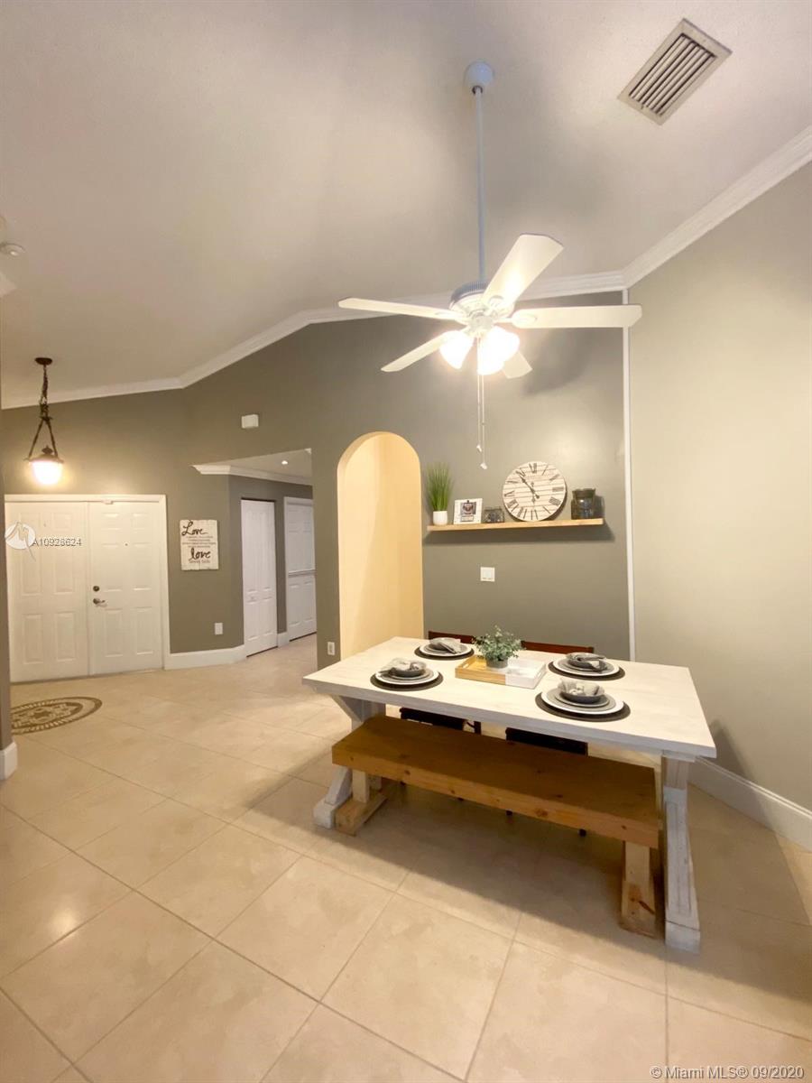 Wow! You will absolutely love this gorgeous, well maintained 3/2 home in highly desired area. The front door leads you to the very spacious living/dining combo area, featuring vast 13' vaulted ceilings, fresh paint & elegant crown molding. The lovely remodeled kitchen offers granite countertops & stainless steel appliances. Enjoy the privacy of the Master Bedroom & large Master En suite as you soak & relax in the spacious tub after a hard days work. Additional features in this split plan model include: new A/C & new Water Heater (2020), indoor laundry room, walk in closets, built in wall safe, Nest A/C Thermostat, Alarm system, faux wood blinds, Double Master Vanities, tiled throughout & more. Great location with easy access to highways, shopping, restaurants, park & much more.