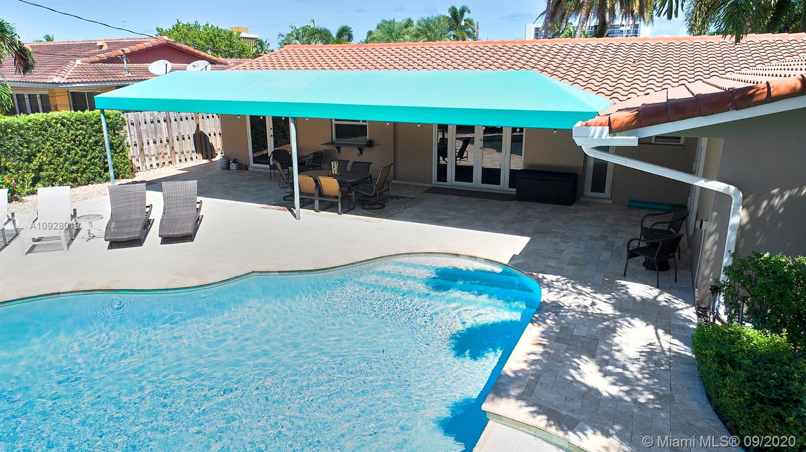 Absolutely the most desirable location ... Coral Ridge Country Club Estates. Just a few minute walk to the beach, restaurants and Bayview Park, this 4/2 boasts a privacy fence and custom-designed saltwater free-form pool with an inviting sun shelf and travertine deck surrounded by lush landscaping. French doors from the master bedroom, dining room and kitchen/family room all lead out to the large covered patio, with lighting and fans. With newly remodeled guest/cabana bath and garage flooring, this beautiful and impeccably-maintained home is on the market for the first time since 1993. Freshly painted inside and out, with porcelain tile, SS appliances, and impact windows and doors throughout. Sun, swim and entertain in this move-in ready home in a delightful neighborhood.