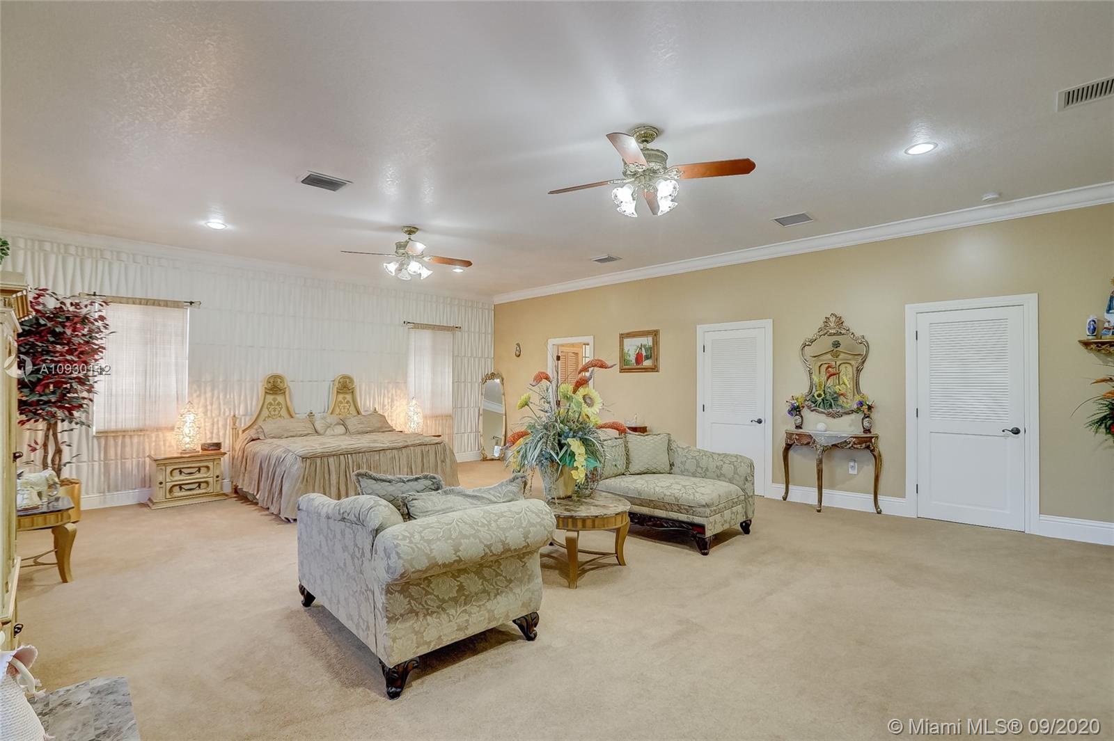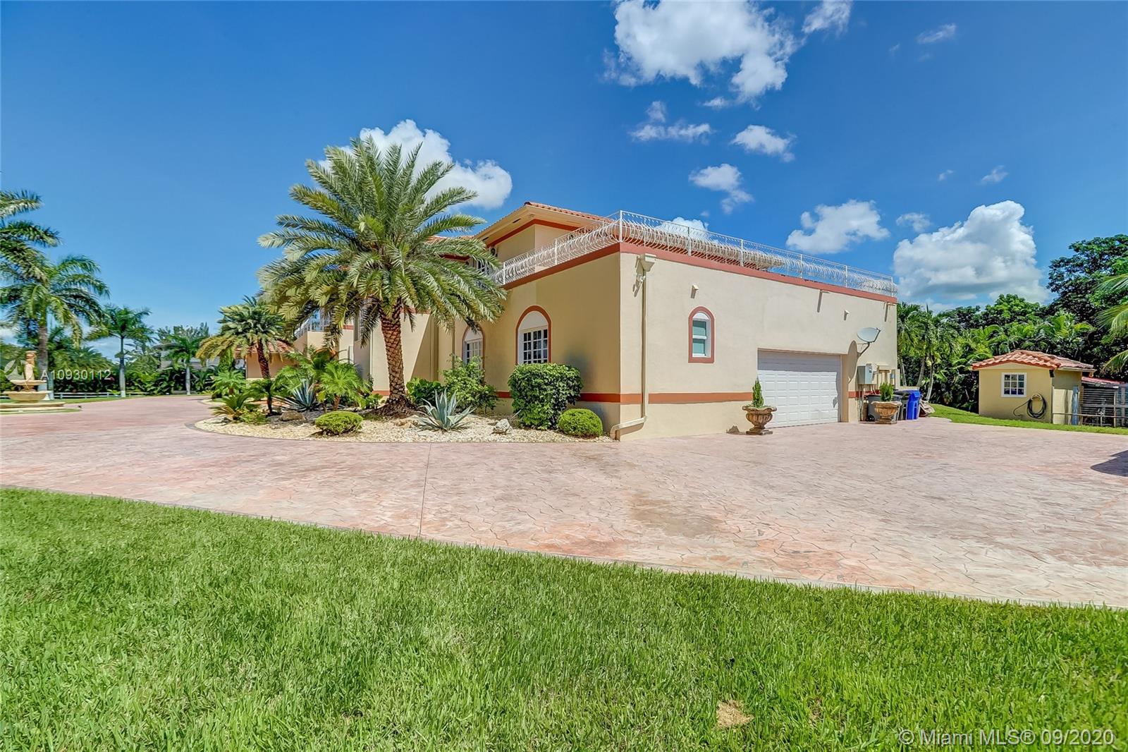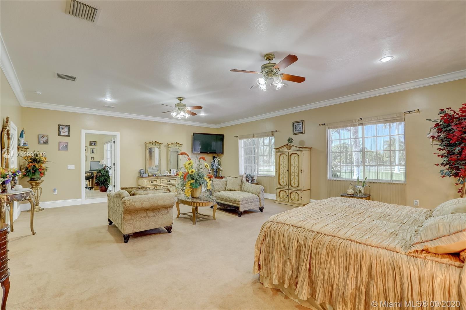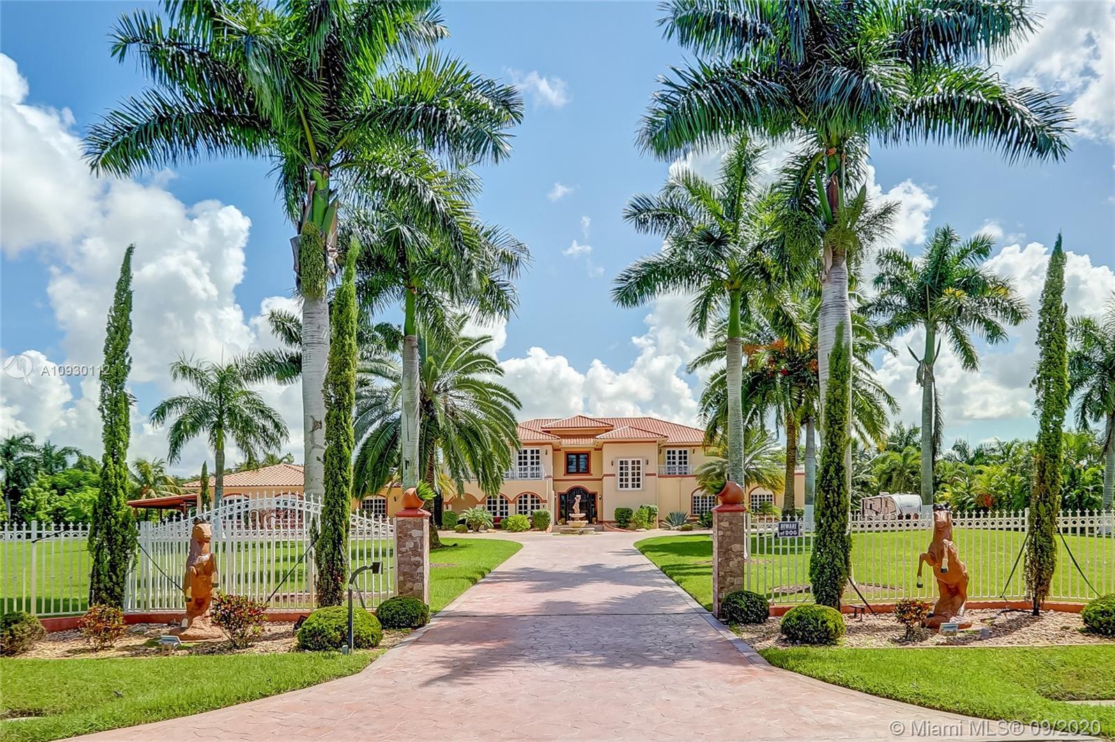Southwest Ranches living at its best! This magnificent estate sits on 2.63 acres on 198th Terrace. Inviting foyer welcomes you into your new home offering a formal dining area off of the kitchen and a living room with a decorative fireplace. En suite bedroom off of the enormous family room and three steps up, an oversized kitchen with breakfast area. Spacious downstairs master suite with sitting area and a living room in the north wing. Upstairs large master suite with walk-in closets and a balcony and master bath with two sinks, tub and separate shower. The other three en suite bedrooms are also on the second floor and are big with walk-in closets.