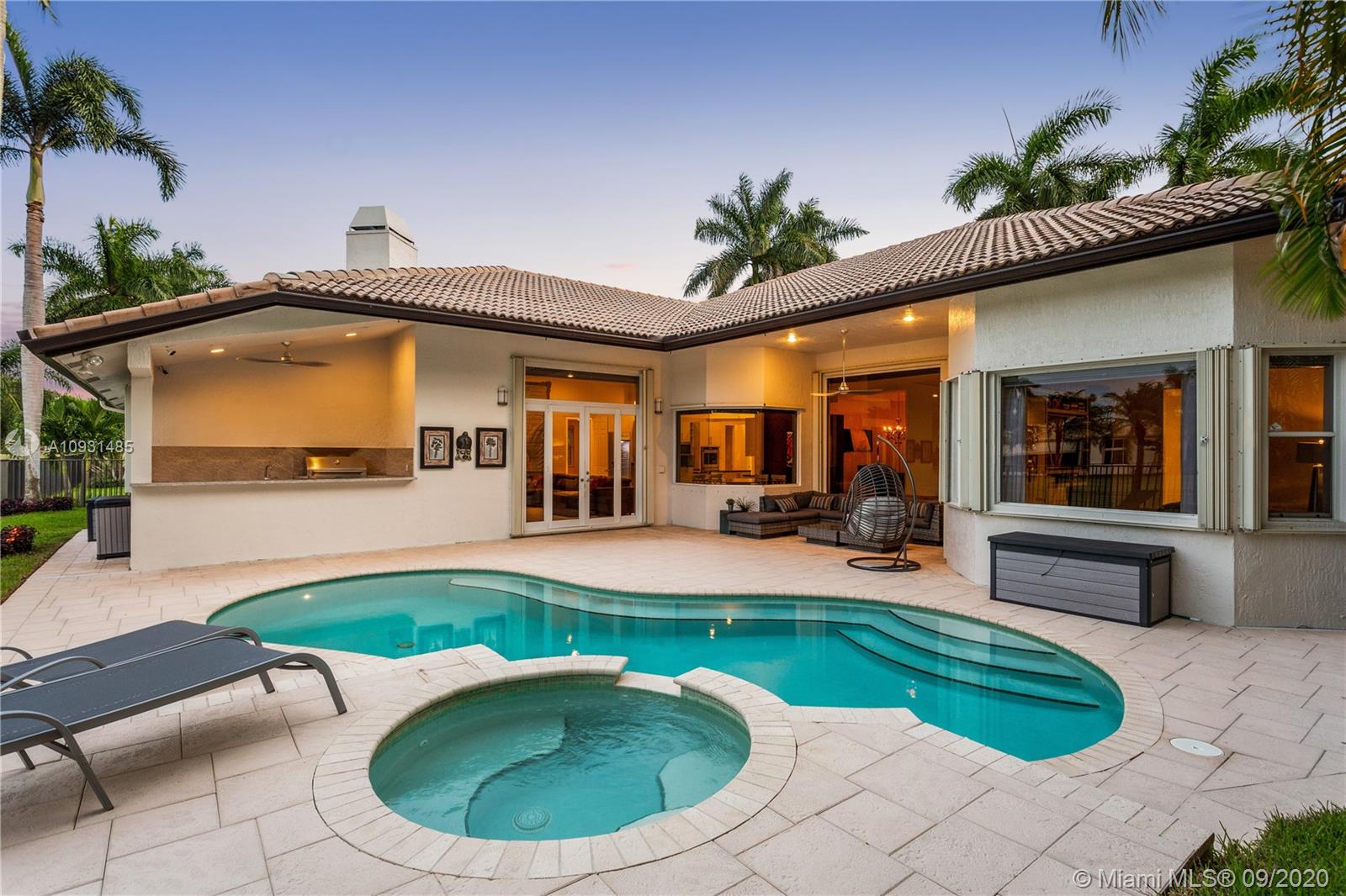 Spectacular ONE STORY 5 BED/4.5BATH + OFFICE home with an AMAZING GOLF VIEW, in the prestigious gated community of Weston Hills Country Club. IMPECCABLY RENOVATED AND MAINTAINED, with marble flooring throughout, remodeled bathrooms, lots of custom built-ins, a brand-new landscaping, among several upgrades. Fully equipped SUMMER KITCHEN, with a new grill – perfect to entertain! Kitchen with gas range and new appliances. A DREAM 3 CAR GARAGE with lots of storage. Automated lighting and sound system and 3-zone ACs (2 new machines). HURRICANE IMPACT WINDOWS in the front and accordion shutters in the back. Simply one of a kind, in IMPECCABLE CONDITION AND READY TO MOVE-IN!