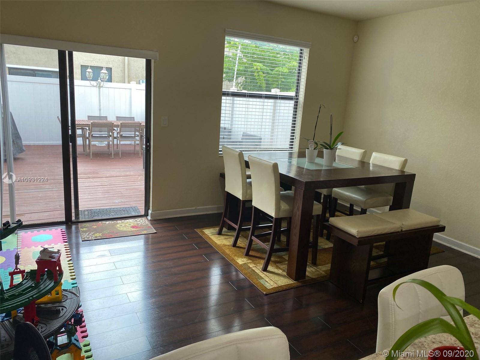 Beautiful 3/2.5 townhouse in the ARAGON gated secured community. Home features hardwood flooring throughout the first floor, stainless steel appliances, washer / dryer on the second floor, fenced yard, 2 assigned parking spaces. Occupied only by the original owners, who have taken very good care of the home. Community amenities include 24 hour security, clubhouse, fitness center, playground , plenty of green area for walking. Centrally located next to the 826, I-75 and the turnpike. Showings by appointment only. Face masks and shoe covers required.