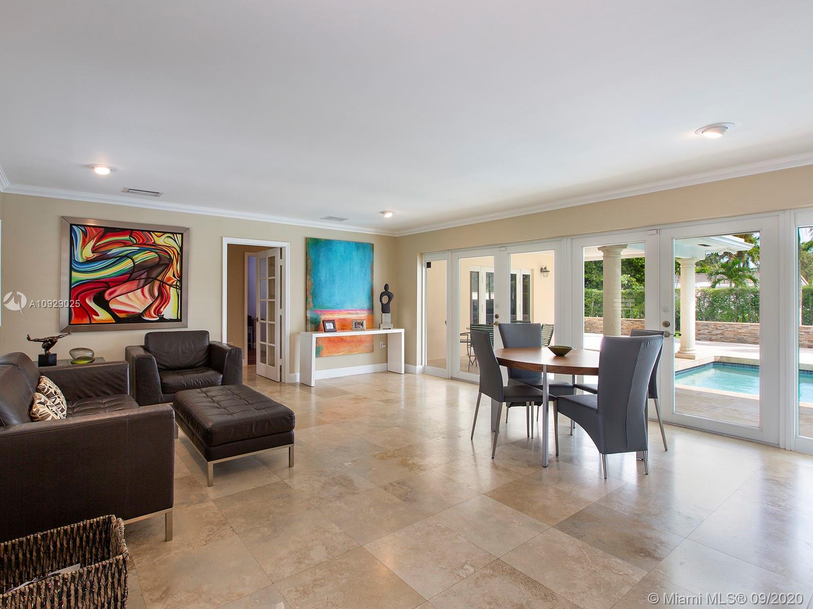 Beautiful and affordable central Pinecrest 4/4 family home on a nice quiet street! Tons of updates including: 2-year old roof still under warranty, impact glass windows and impact French doors throughout, full house generator with underground gas tank. Marble and wood floors, updated bathrooms, and a split plan with a huge master suite featuring dual closets and a huge bathroom. Nice and relaxing pool-patio (facing south), iron gates, and more. Walk to Pinecrest schools!