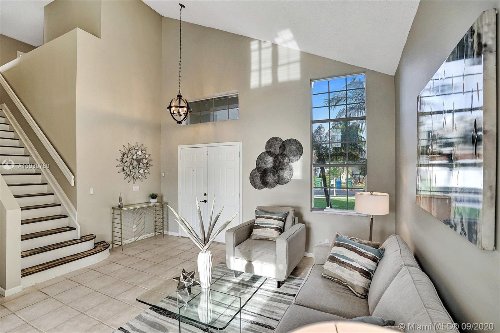 LARGEST & MOST BEAUTIFUL Weston WATERFRONT BACKYARD available in this price range. Enjoy tranquil scenery w/ family & friends from your extended screened-in covered patio. Inside, this is one of the LARGEST 3 bedroom 2.5 bath FLOORPLANS in Weston. This home has been FRESHLY PAINTED w/ DESIGNER LIGHTING, 2 story vaulted ceiling in living/dining room, neutral tiles on 1st floor, contemporary wood-look floors on 2nd floor, & a beautifully stained rustic wood staircase. Stainless steel appliances & granite counter tops. REMODELED MASTER BATH w/ gorgeous stand-alone tub. Custom cabinetry in master closet and 2nd bedroom. BRAND NEW A/C. Air ducts have been cleaned & sanitized. 2006 Roof, ACCORDION SHUTTERS, Laundry Rm. Near shops, parks, elementary, middle school & I-75. Zoned for Cypress Bay.