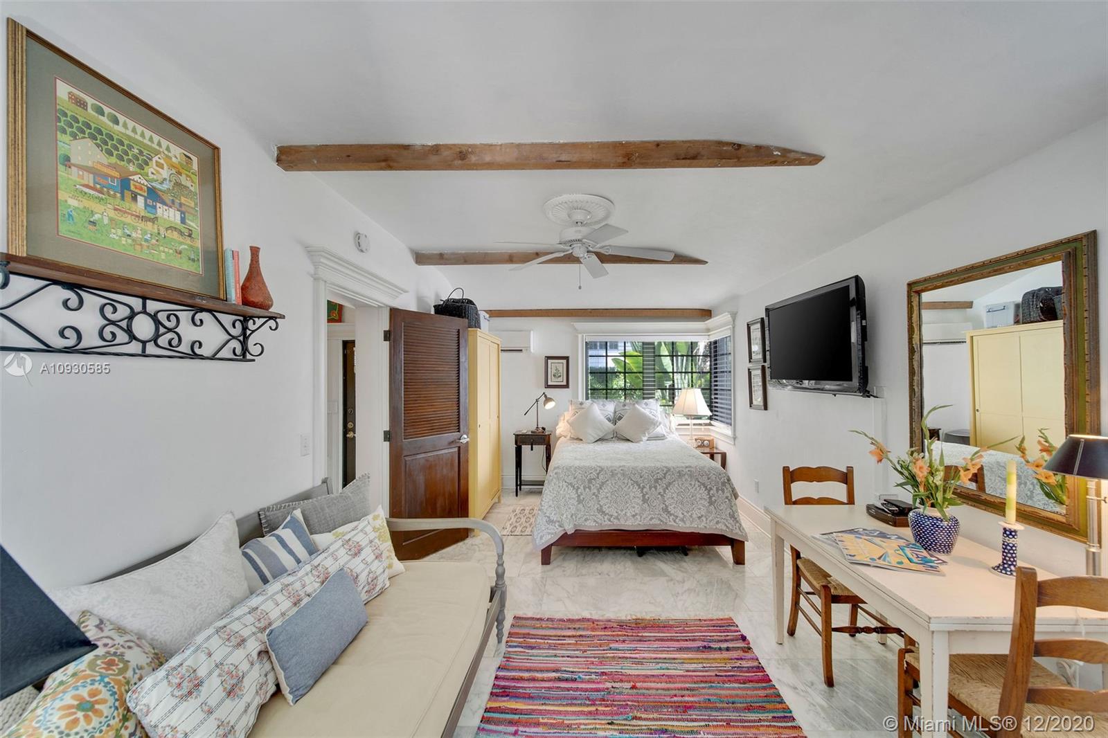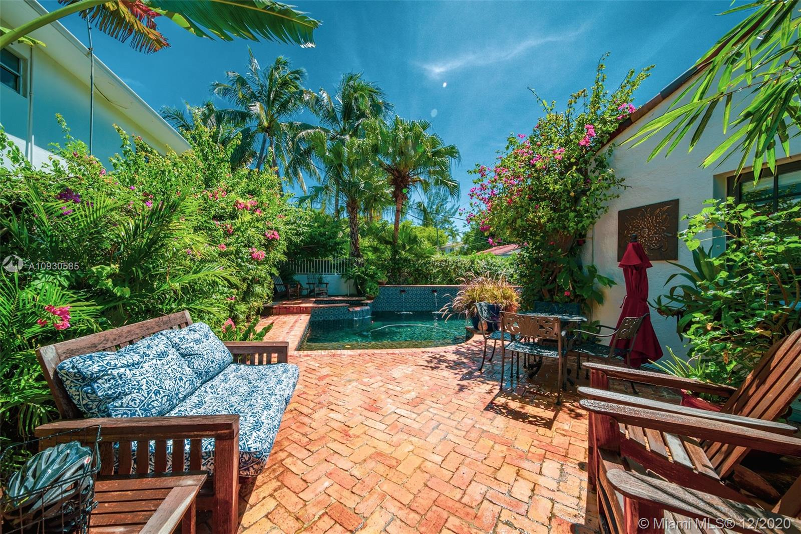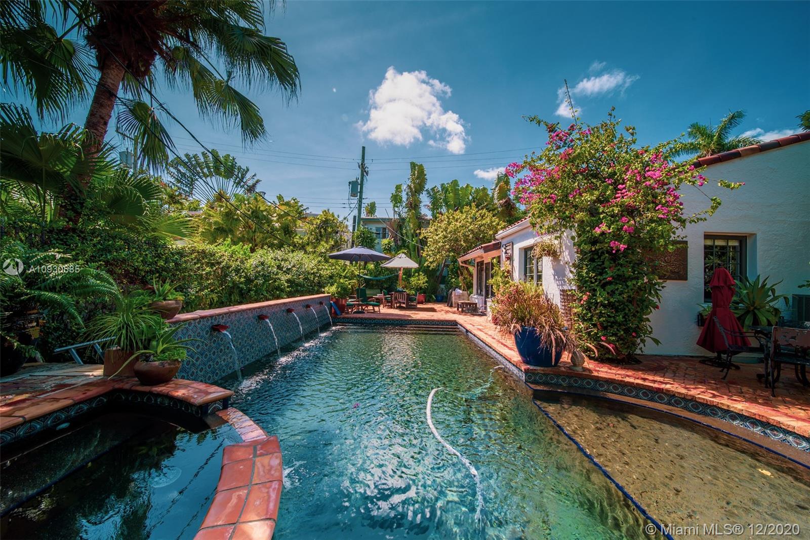 A gated driveway secludes this 8,000 SF parcel of land from the bustling neighborhood of South Beach. With a mature and lush tropical garden surrounding one of the few remaining early 20th century Mediterranean Revival homes in the area, it's like visiting the Spanish riviera every time you enter. Inside this 4 bed /4 bath home boasts a private 1/1 in-law suite, custom woodwork and built-ins, coffered ceilings bedrooms, a 15ft vaulted living room with exposed beams, and it has been meticulously maintained to complement the architectural design and vintage. Moreover, this oasis has its own private saltwater pool and spa with fountains, over 1,500 sqft of Artscape patios and lit walkways. Lot is zoned RM-1 for development opportunities.