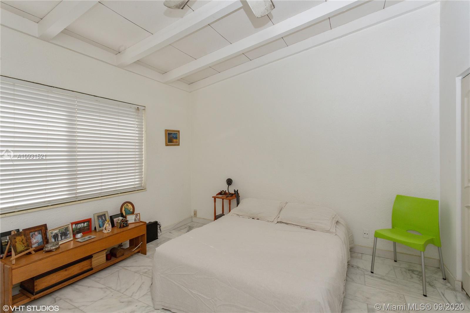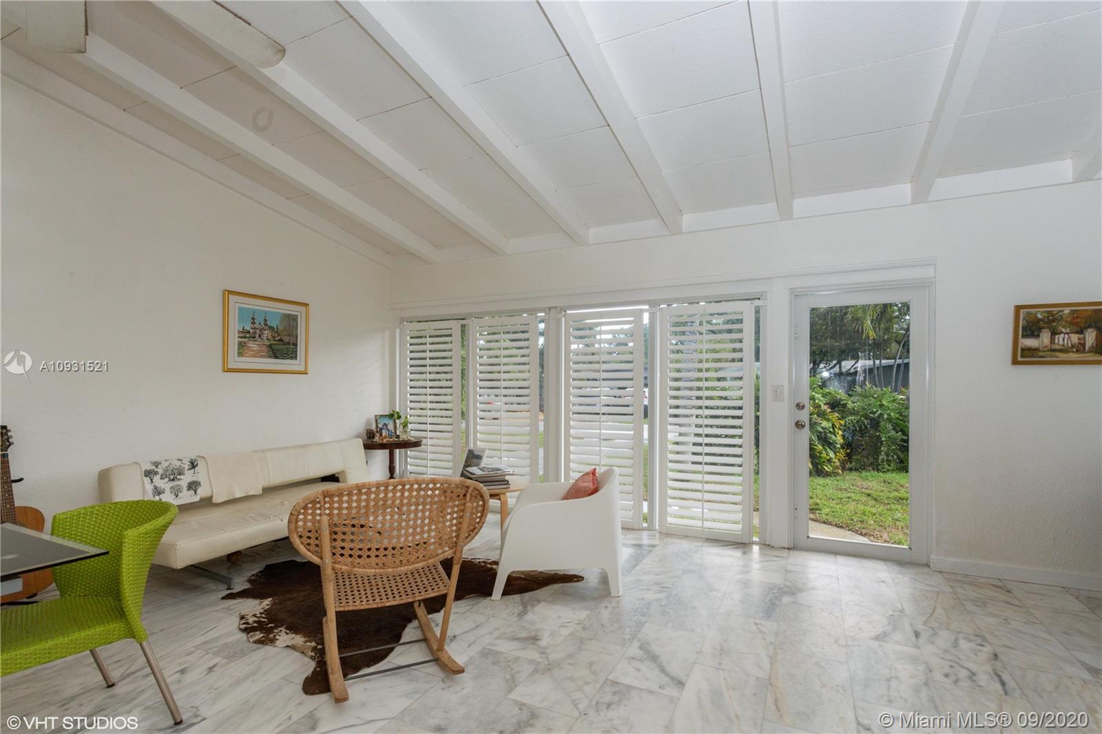 New to market, this remodeled Mid-Century Modern features high ceilings with exposed beams, 12"x24" honed Carrara marble flooring, renovated kitchen and bath & recently installed impact windows & doors. The plantation style shutters allow natural light to fill the home. A partition was added to the second bedroom allowing for a master walk-in closet, & an office with its own entrance. Partition can easily be removed to return office/closet to 2nd bedroom. Impact rated french doors lead to a large screened patio overlooking the large fenced lot, with access to the laundry room located at the rear of the carport. Located in Middle River Terrace you're walking distance to Wilton Dr., Downtown Ft. Lauderdale, shopping & the beach. Home is in good condition with potential for expansion.