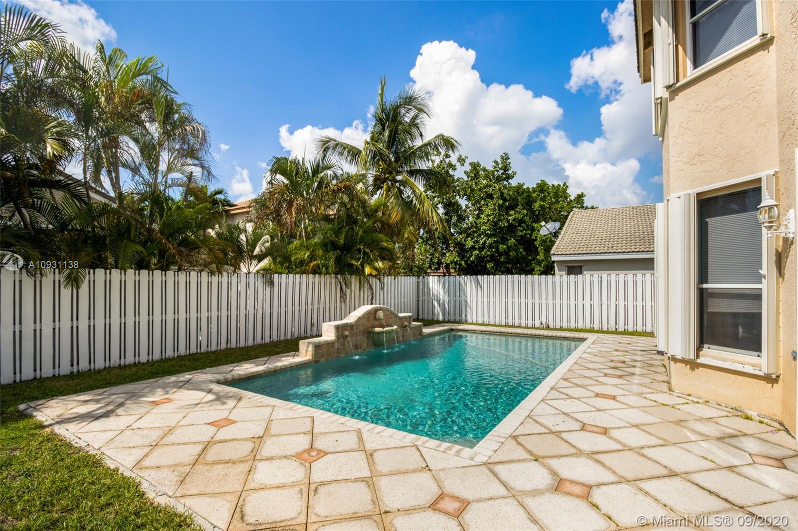 Retreat in this beautiful Mediterranean style home. Centered in a most beautiful area. You are welcomed home through tall French doors opening into the spacious surroundings of the foyer and entertainment areas of the home leading to glass doors that invite you to enjoy the views of the refreshing swimming pool with fountains set in the tropical backyard with plenty of space to enjoy outdoor dining and entertaining. Dinner is served from the spacious upgraded kitchen that boasts luxury features such as granite counter tops and stainless steel appliances with a bar top island that serves to the family Room which is filled with natural light from the picturesque bay windows. Cleanse and refresh in the modern spa like water rooms and showers and seek refuge in any of the 4 spacious bedrooms.