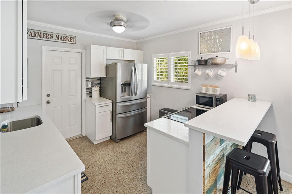 Super cute 2/1 in Hot Croissant Park. This home was completely renovated in 2017 and is in MINT condition. New S-tile roof, new hurricane rated impact windows and doors, new kitchen with white shaker soft close cabinets, snow white quartz countertops, and stainless steel appliances. New custom bathroom, new A/C, new plantation shutters and blinds, new washer and dryer, and super cool terrazzo floors throughout. The lot is very deep which gives you plenty of room to add a third bedroom and a custom pool in the future. Amazing area close to downtown, airport, and all of the action in vibrant Fort Lauderdale. If you like the look, furniture is also available, on a separate bill of sale. Don't miss out on this one!