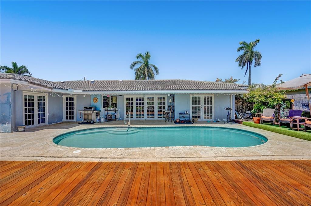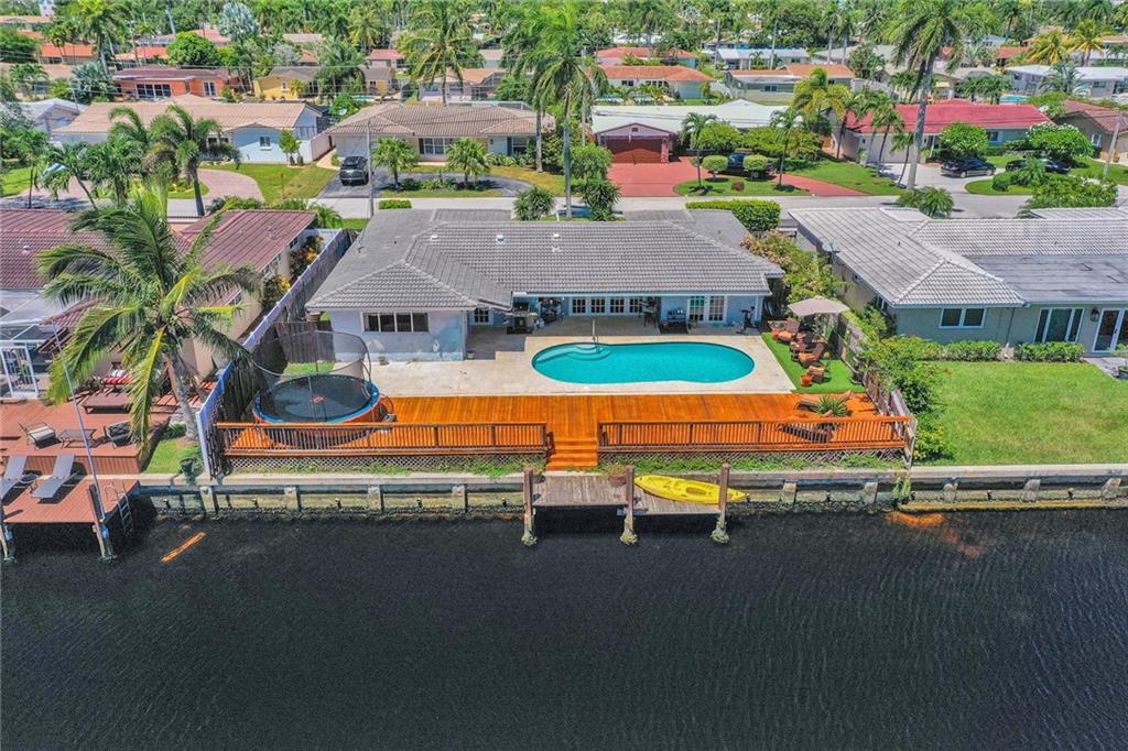 Beautiful 3 bedroom 2 bath waterfront home in Coral Ridge Isles. 75’ waterfront with ocean access. Features include wood flooring, impact windows, updated kitchen with granite countertops and stainless steel appliances, generator and more.Fantastic backyard with saltwater pool, wood deck, grass area, dock and water views!