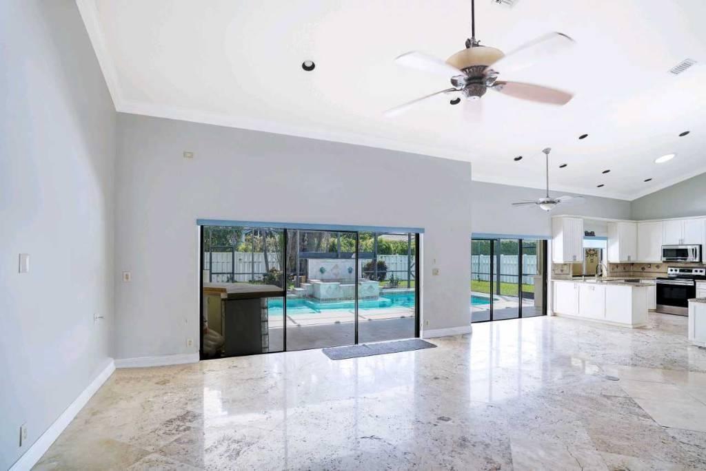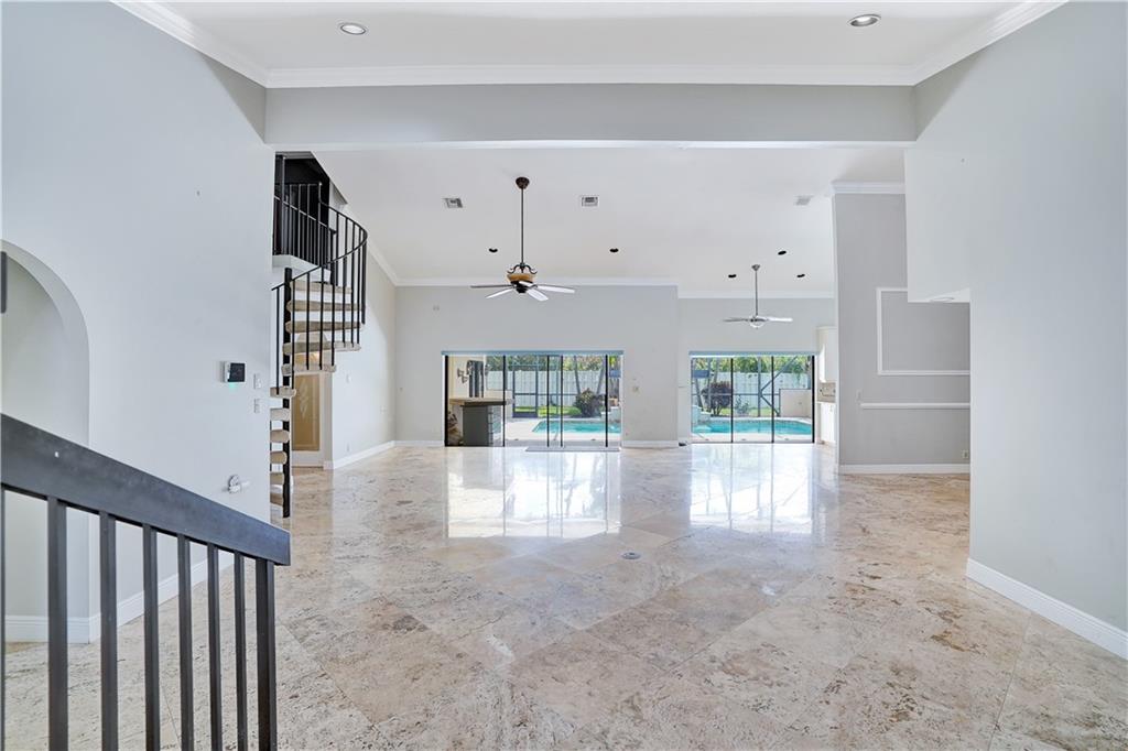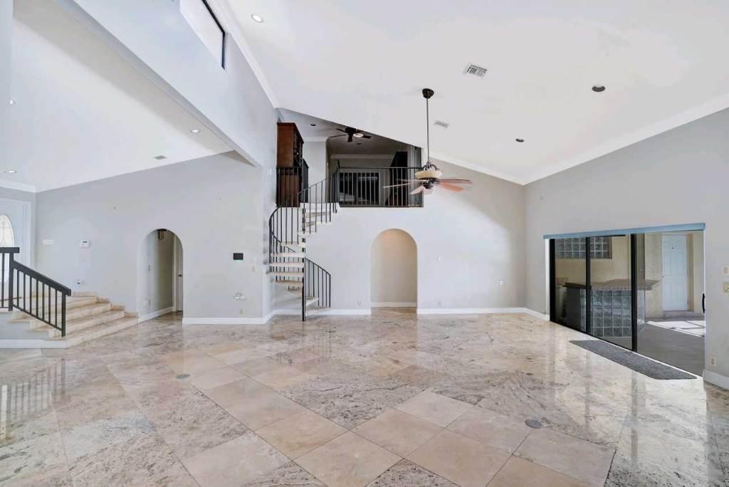 Oversized single family home with no HOA. Open layout with 6 bedrooms and 3 full bathrooms with 2 half baths. Home includes theater room with office/den. Marble floors throughout the living areas with vaulted ceilings. Kitchen is newer with stainless appliances. Bathrooms have been upgraded as well. Master has its own suite upstairs away from everyone. 3 car garage 2 attached and 1 single. Brand new fenced in yard with gorgeous pool area with a jacuzzi. Wet bar and bbq area outside with a screened in patio area. Circular paved driveway. Great area for a family.