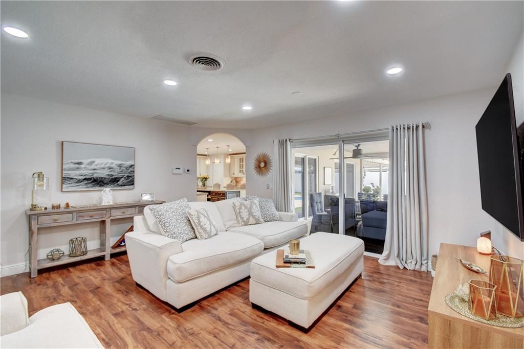 Fantastic home completely updated! Gourmet Chef's kitchen w/Forever Mark custom cabinets, granite countertops, professional grade Kitchen Aid double convection oven & KitchenAid Architect series II gas stove w/ upgraded gas service line & high powered exhaust hood. Large 96" island with under counter seating. Hurricane impact windows & doors. Dimmer lighting throughout house. Gorgeous baths with Crema Marfil marble counter tops & contemporary undermount sink. Dual flush elongated toilets. Custom plantation shutters. 2 car garage. Titan tankless water heater. Huge patio w/stamped concrete decking for entertaining with beautiful Nirvana heated pool with spa. New St Augustine grass through out front yard. Outdoor security motion sensor lights. Privacy PVC fence. Ready to move in!