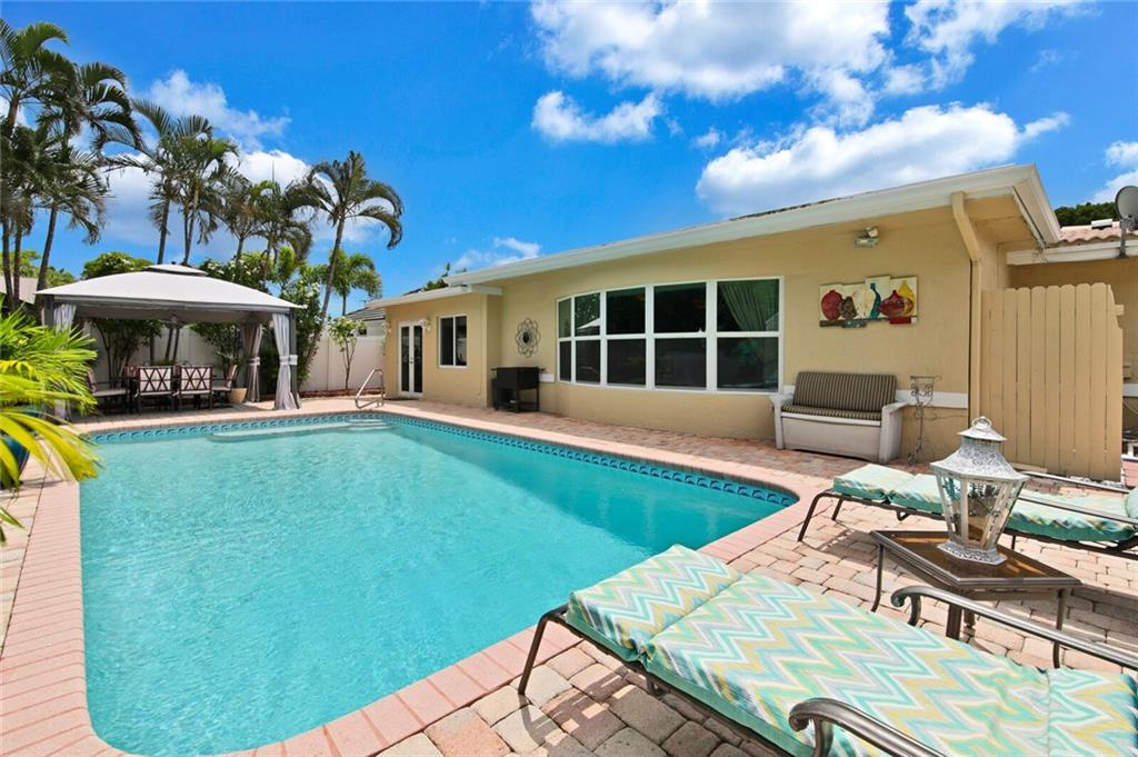If you want an entertaining backyard this one is for you! This cared for 3-bedroom 2 bath home has been taken care of by Mr. and Mrs. Clean. Located in Imperial Point close to all the shopping, restaurants and 2 miles to the beach. The home is ready to move in and the owners have done a TON of new upgrades. The floor plan is very open with a large bay window overlooking the pool and large back yard. The bedrooms are split on either side of the house, so the master is on one side all alone. You will enjoy your coffee in the 12x15 sunroom surrounded by windows. The kitchen has been renovated will all new stainless appliances and a wet bar. The curb appeal is amazing with a 20x20 gated courtyard, circular driveway and a 2-car garage. Come see this home and you will fall in love yourself.
