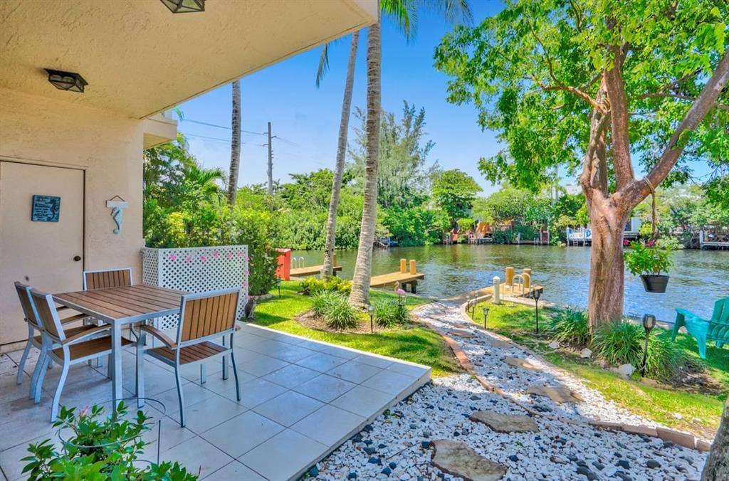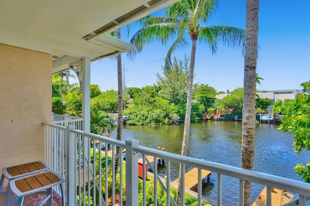 Rarely available, this gorgeous corner townhome w/ amazing water views & your own private dock is just minutes to Wilton Dr. Intimate 15-unit complex w/ fee simple ownership has beautiful landscaping & the pool is just outside your front door & your private dock, patio and garden area are right outside your living room sliding doors. This is one of the larger floorplans & features a spacious loft between the bedrooms that can be used as an office. There is a private balcony off the master bedroom & a washer/dryer upstairs for convenience. Beautiful kitchen & bathrooms, custom flooring, plantation shutters & high impact windows & doors. There is 1 covered parking space & open parking, HOA covers exterior insurance & maintenance. https://www.youtube.com/watch?v=Gxs-FD9PBSU&feature=youtu.be