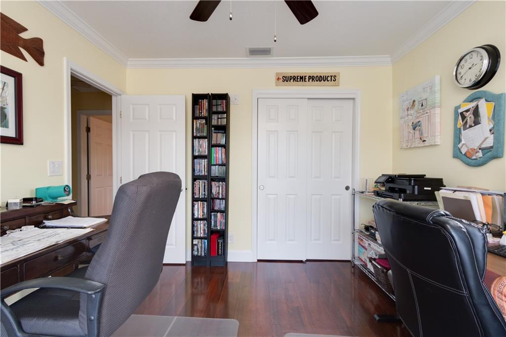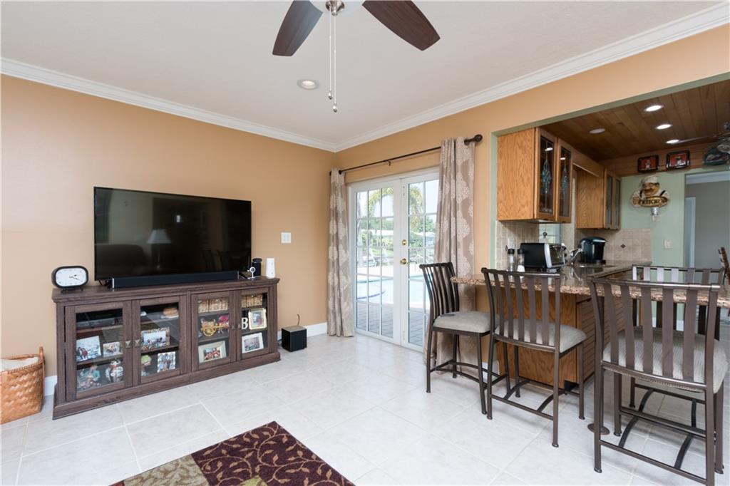 A Boater's delight. On ocean access canal (with 3 fixed bridges)! True 4 bedroom (split plan) with knock down walls, crown molding everywhere, Large neutral tile in living areas, laminate in bedrooms. double paned Argon (gas insulation) windows! French doors across rear of house, opening to pool & waterway! Beautifully updated baths! Kitchen: granite countertop, solid wood cabinets, Wood ceiling w/high hat lighting! large commercial gas stove (gas from gas tank) with commercial hood & all the appliances you could want! Laundry appliances in separate step up area at end of garage! Chicago brick patio surrounds open pool, provides walkway to private dock & boat lift. Wood fencing! Automatic sprinkler system--from canal. Fully guttered house with square commercial gutters!