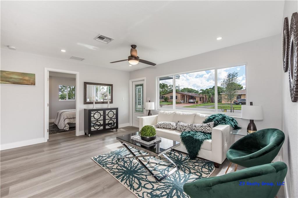 Completely updated, gorgeous home with all NEW materials: From the walls, electric, plumbing, HVAC, lights, fans, appliances (Samsung stainless-steel Refrigerator, Dishwasher, Range & Microwave) to the gorgeous white cabinets w/sparkling Quartz countertops & separate pantry w/indoor laundry! New bathrooms with all new tile, tub, cabinets and fixtures! Brand new roof, hurricane Impact Windows & Doors. This true 4-bedroom, 2-bathroom house was professionally rebuilt to today's style! Amazing large and fully covered backyard patio for entertaining with new 6' fence in yard w/2 gates. New Irrigation system & well/pump for the new landscape - you have to see this one!