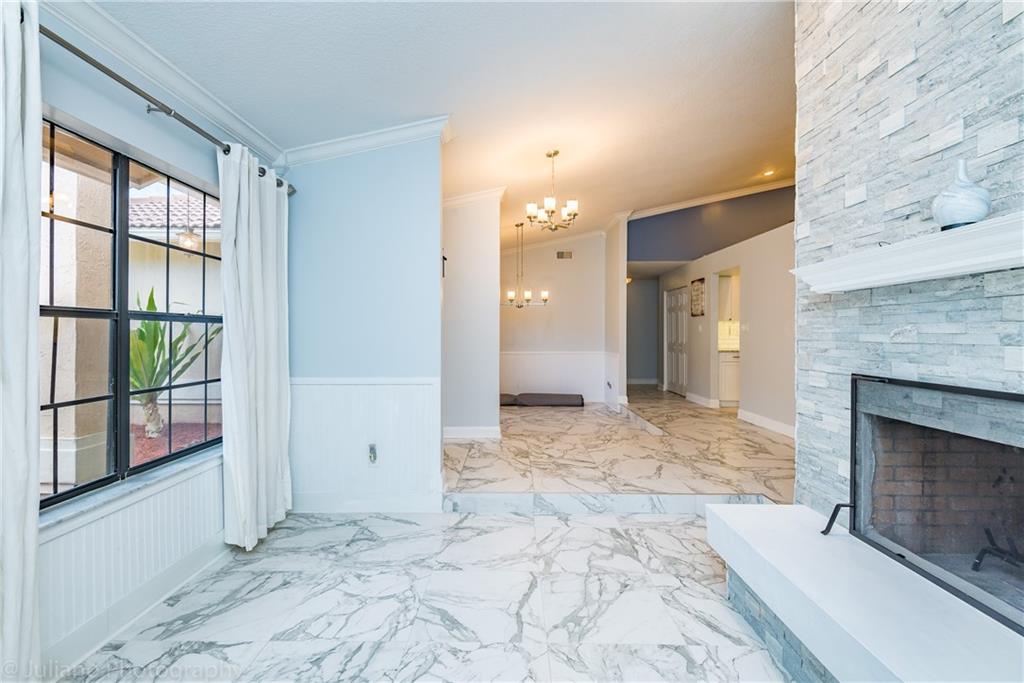 BEAUTIFUL 4BR/2.5BA/2CG HOME IN LOVELY PINE RIDGE COMMUNITY. FROM THE MOMENT YOU STEP INTO THE VAULTED CEILINGS WITH STONE DOUBLE SIDED FIREPLACE TO THE REFRESHING POOL WITH LARGE COVERED TERRACE YOU WILL KNOW YOU HAVE FOUND YOUR NEXT HOME! GORGEOUS KITCHEN WITH WHITE WOOD CABINETS, EXOTIC QUARTZ COUNTERTOPS AND UPGRADED SAMSUNG APPLIANCES. NEW WHITE PORCELAIN TILE FLOORS IN ALL LIVING AREAS, NEW CROWN MOULDING AND FRESHLY PAINTED INTERIOR. EXCELLENT SPLIT PLAN LAYOUT WITH BREAKFAST AREA, FAMILY ROOM, AND FORMAL LIVING AND DINING ROOMS. THE GARAGE IS A MAN'S DREAM COME TRUE! PROFESSIONALLY CONVERTED "MAN CAVE" WITH RECESSED LIGHTS, MINI SPLIT AC SYSTEM AND WOOD LOOK TILE FLOORS. (OWNER IS WILLING TO REVERSE IF BUYER SO DESIRES.) FREE 1-YEAR HOME WARRANTY INCLUDED. MOVE IN READY!