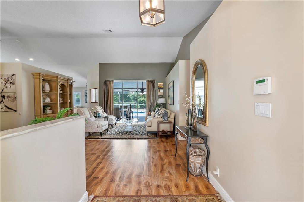 This Home was once the builders model for North Springs! Sellers have enhanced it even more!! As you enter you're greeted with voluminous ceilings that give spaciousness. High Quality Laminate Flooring throughout whole home w/High Baseboards. Upgraded Kitchen shows off an oversized island w/hidden outlets and illuminated glass cabinetry. Integrated Bosch Dishwasher, Professional Series Oven, Pantry Doors finished with matching cabinetry with pull out drawers, Bluetooth Lighting, Granite Counters with Tumblestone backsplash, Two Sinks Two Disposals!! Master Bath upgraded w/Quartz Counter, Beautiful stand alone tub, Hansgrohe Shower fixtures, Herringbone Floor Tile and Bluetooth Ceiling Speaker w/Quiet Fan and Light. Oversized Screened Patio overlooking Pool and large corner lot yard.