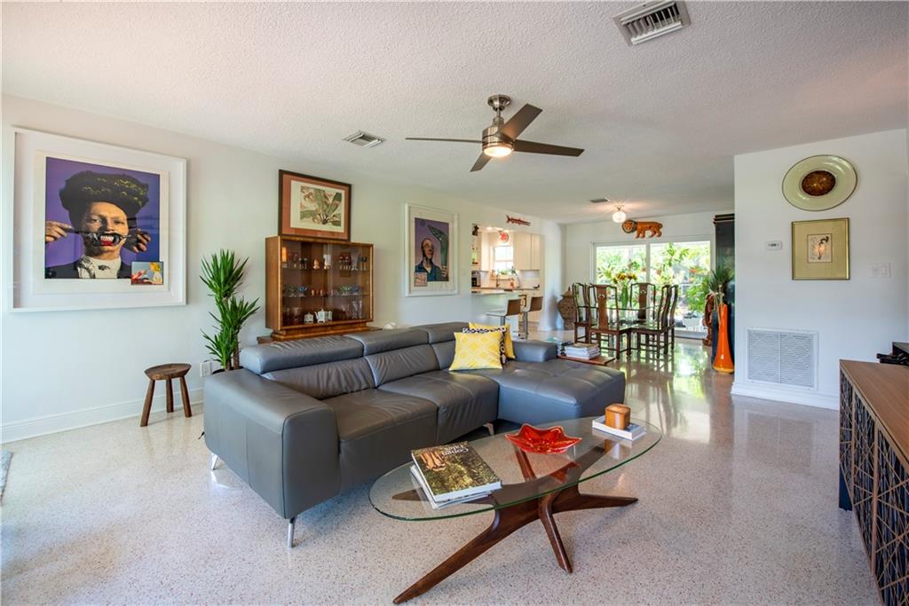 A tropical oasis awaits you in this thoughtfully renovated home in the Mary Knoll section of Imperial Point. Gleaming terrazzo floors run throughout this 2+2 home, the kitchen features white shaker style cabinets with White Bamboo stone countertops, White Ice appliances and a laundry room renovated to flow with the kitchen. The master bedroom features a walk in closet and en suite bath, both bathrooms have been nicely updated. The open floor plan features beautiful natural light, there's an oversized carport and a great back yard with specimen plantings and great space for entertaining. This great location is five minutes to the beach and Lauderdale by the Sea, dining, shopping and everything you need! Move right in without the headaches, you will love living here!