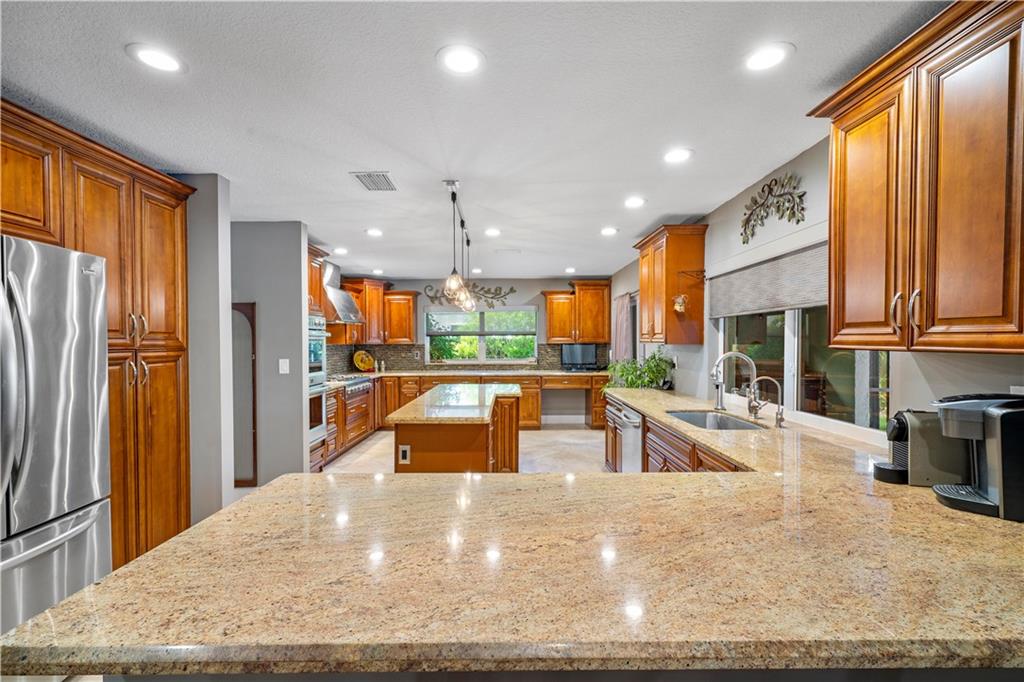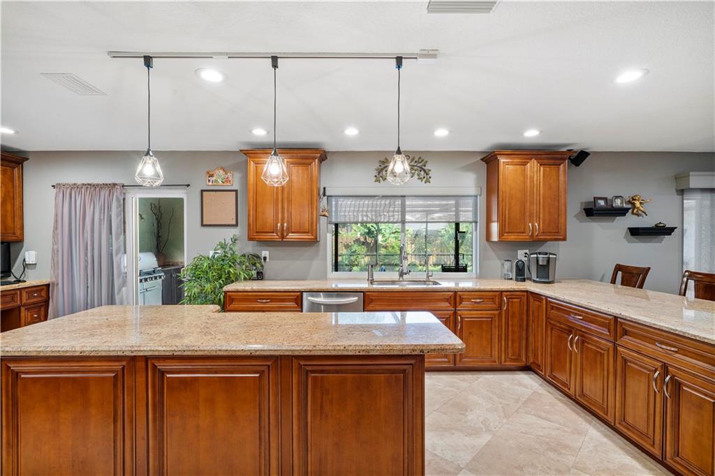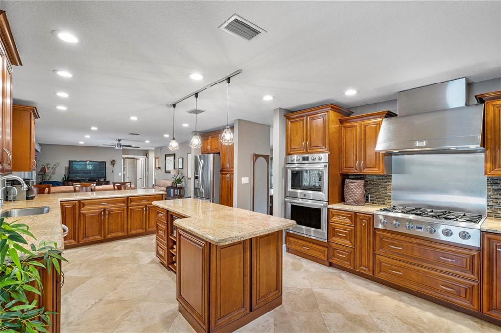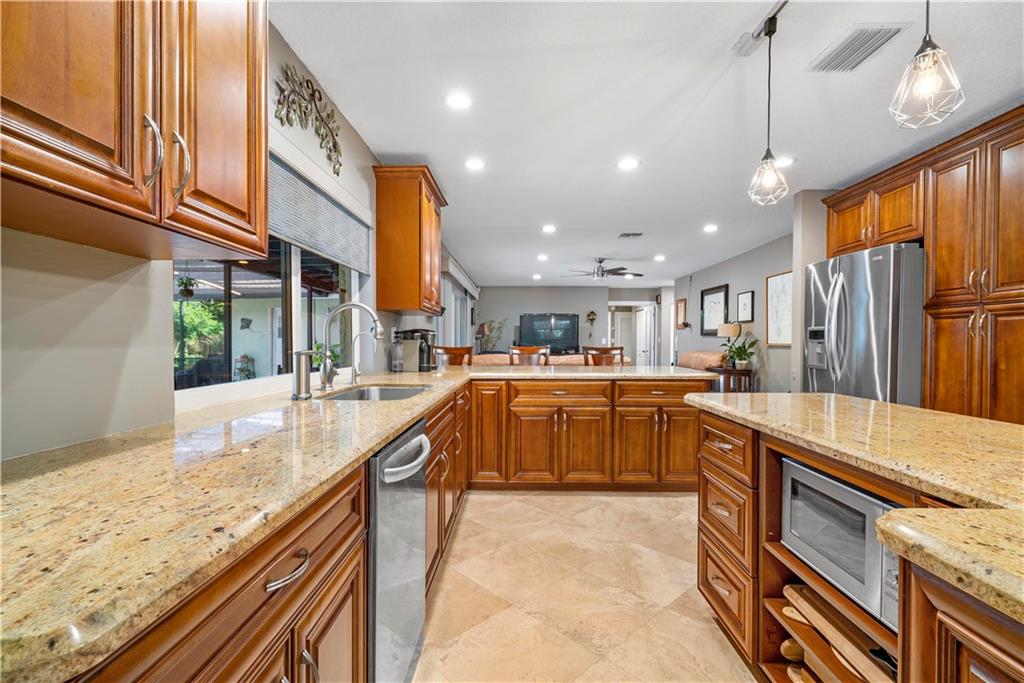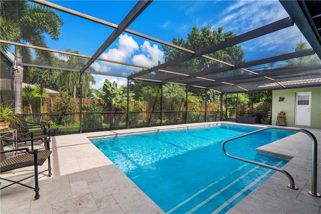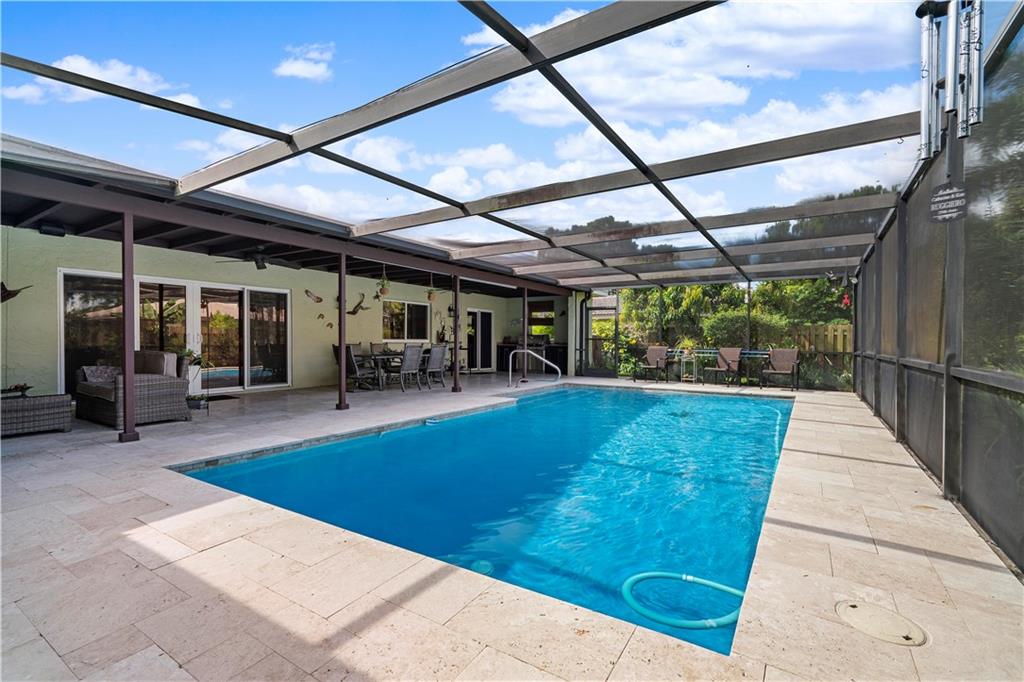 Imagine owning this meticulously maintained 4 bedroom home with all new luxuriously appointed renovations to the max with over 2800 sf under air with resort style screened pool and gracefully nestled on interior street in sought after Maplewood. Hurricane Impact windows and sliders.Warmth and inviting open plan with porcelain tiles throughout living spaces and travertine in the kitchen plus Oak floors in the bedrooms.The huge remodeled kitchen is a cook's dream with 6 burner GAS range, french door refrigerator, 2 convection ovens, wood cabinets all opening to the family room. Beautiful upscale bathrooms all renovated! Plenty of room for outdoor entertaining on screened travertine patio with outdoor kitchen & high end Weber grill. Fenced backyard with plenty of garden space.NO HOA!!