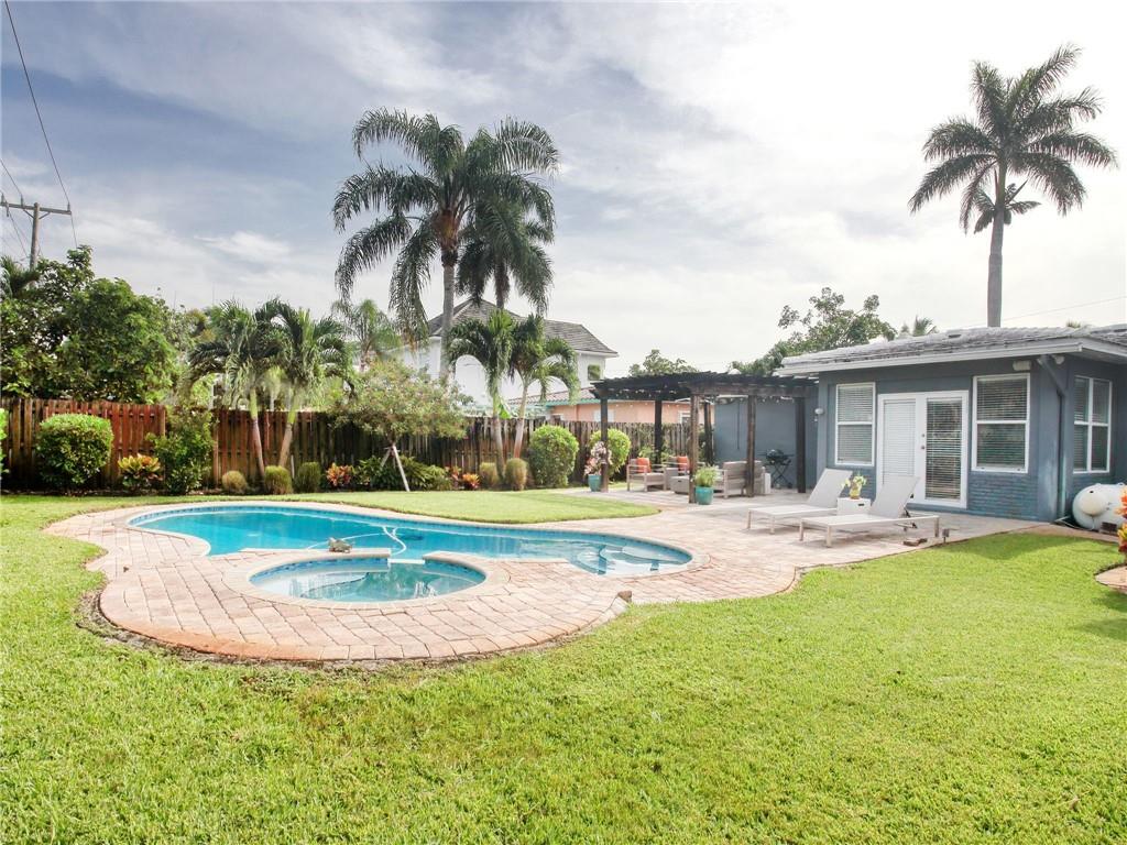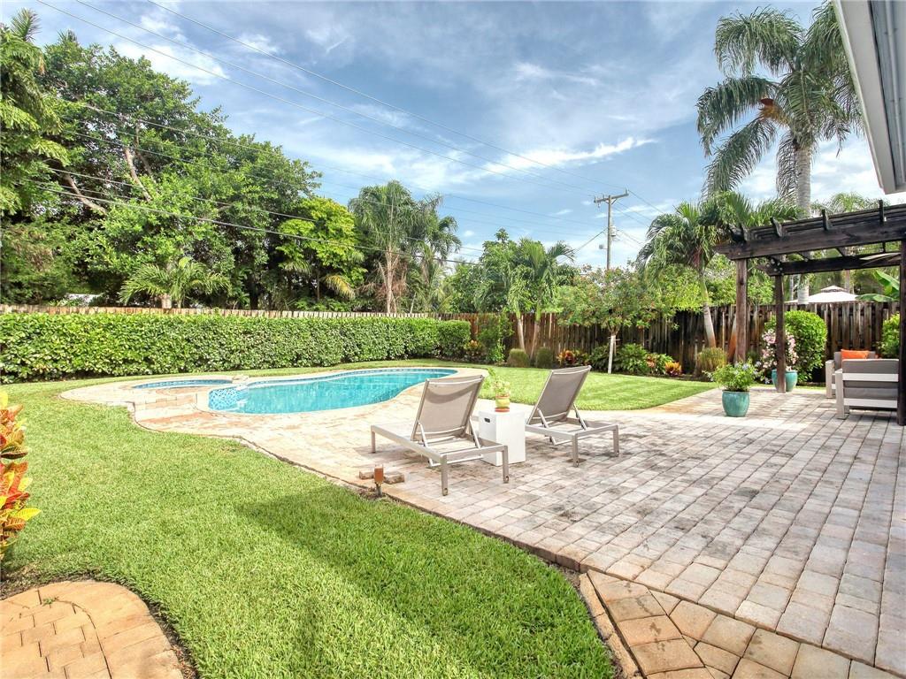 Perfection is an understatement when it comes to describing this precious jewel in Poinsettia Heights! Its location is second to none as it's located just a short distance from the famous Las Olas Blvd. and Lauderdale beaches. The pictures speak for themselves with this beautiful open floor plan. Enjoy your kitchen with brand new counter tops, custom cabinets and GE Monogram appliances. Enjoy family time or entertain outside in the newly resurfaced, heated, salt water pool and spa. This property is also a pet lover's paradise where your pets will be free to roam and play in your expansive fully fenced yard. An added plus for those who need storage, your single car garage is equipped with custom storage wall units! There are two driveways for additional parking.