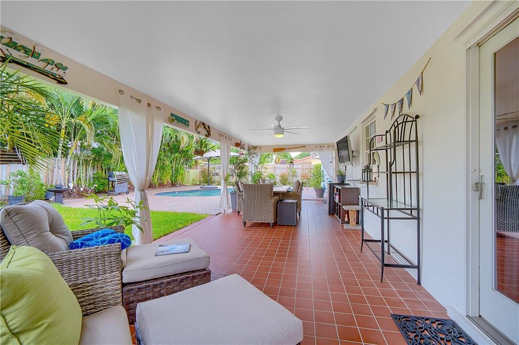 NEW PRICE! BEAUTIFUL BEACH HOUSE, nestled in sought after Imperial Point community, this single-family residence is a tropical paradise, open floor-plan upgraded kitchen with stainless steel appliances, granite countertops, wine cooler, ceramic flooring throughout, upgraded bathrooms, spacious master bedroom overlooking the fabulous pool area, home features over 300sq. ft. of covered outdoor living designed to enjoy the tropical setting, fully fenced in for maximum privacy, keyless entrance, Nest thermostat, newer a/c, two-car garage. Close to the beach, shopping, entertainment, and much more. A MUST SEE!