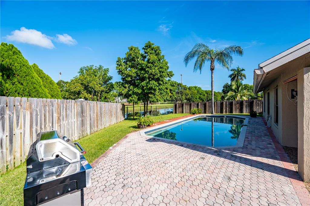 Welcome home and welcome to Country Address Encore, please come in. Your new home sets on an over sized corner lot, has 4-bedrooms, 3 full bathrooms, a pool and it is on water. This home has been well maintained, has a over sized two car garage, the yard is fenced in on all sides and has a fruit tree. Your community has multiple parks in the area, underground utilities, sidewalks and street lights. You are in walking distance to A+ Schools, Community Centers, Optimist sport fields and so much more. Cooper City also hosts multiple community family activities during the year. This home has a lot of opportunities, it just needs your touch.