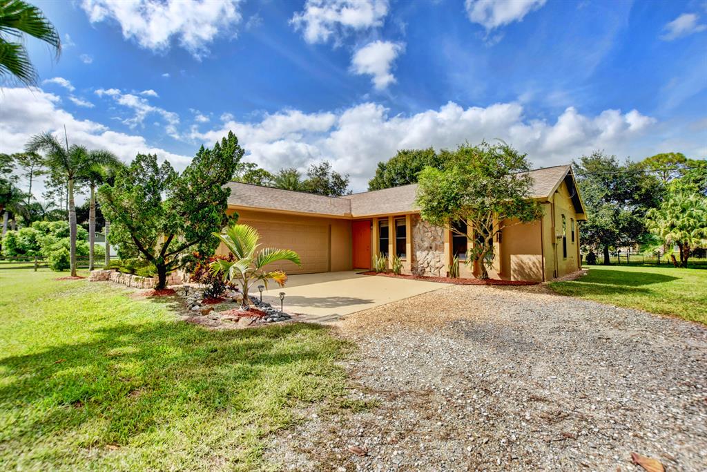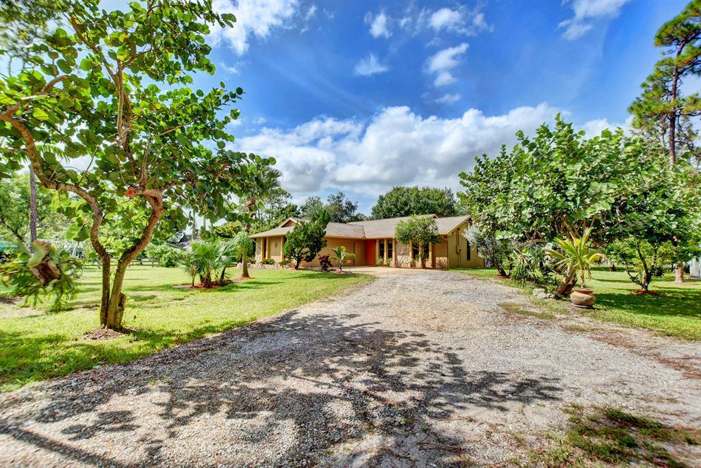 Gorgeous landscaped 1.29 acres in WPB. Close to RPB Pines Natural Area. Freshly painted 3/2 home with attached garage features generous sized bedrooms and a bonus area, Stainless Steel Appliances in Kitchen. Large Master Suite with beautifully upgraded master bath and large walk-in closet. Enjoy a variety of fruit such as Dragonfruit, Mango, Avocado , White Mulberry, Loquat and Sapodilla from numerous trees while sitting on your oversized back patio. Plenty of room for all your toys. 3.5 ton AC 2019, roof 2005, Well Pump 2019 and recently cleaned and serviced Septic Tank. NO HOA! NO POLY PIPES.